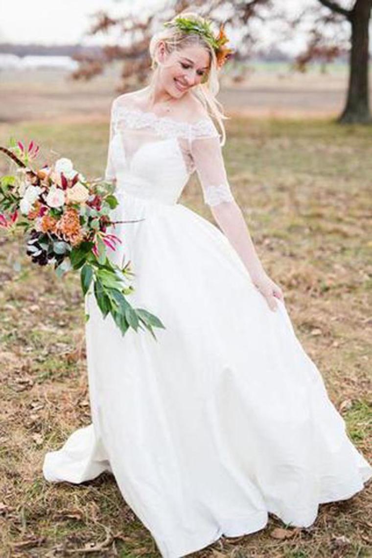Simple Elegant Long A-Line Ivory Wedding Dresses With Sleeves
