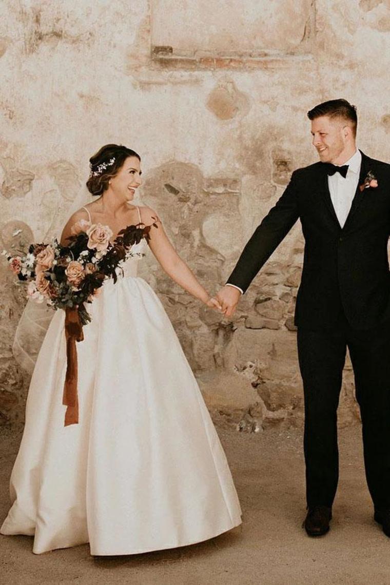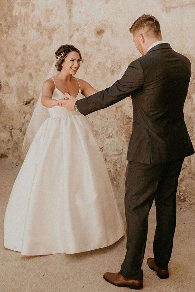 Simple Ivory Sleeveless Beach Wedding Dress Floor Length Satin Spaghetti Straps Bridal SRSPC6KYY8G