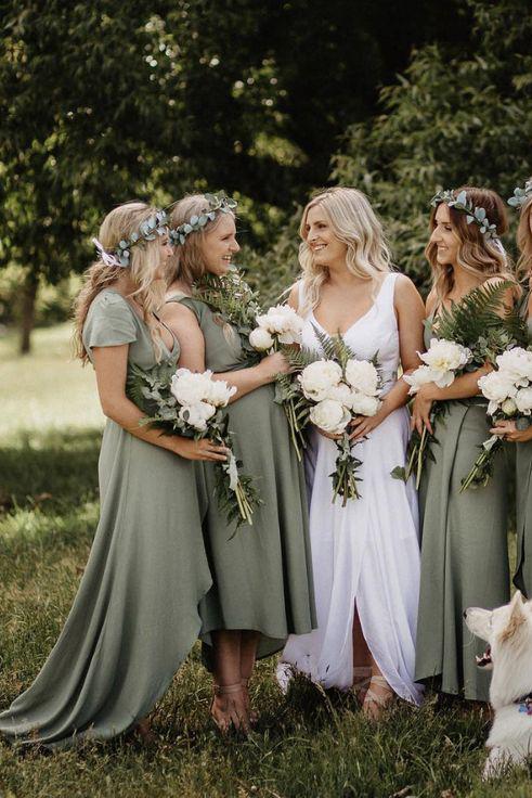 Simple V Neck Green A line Bridesmaid Dresses, Cheap Wedding Party Dresses SRS15599