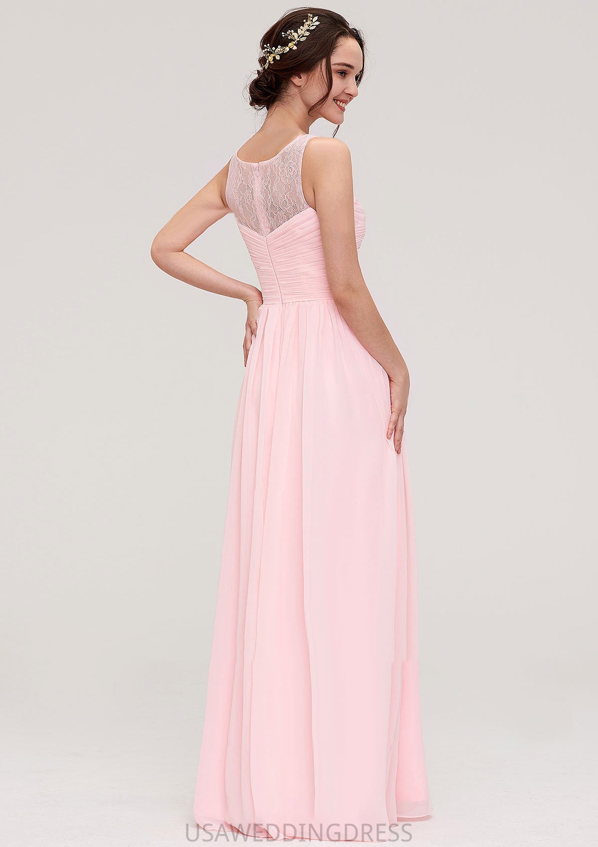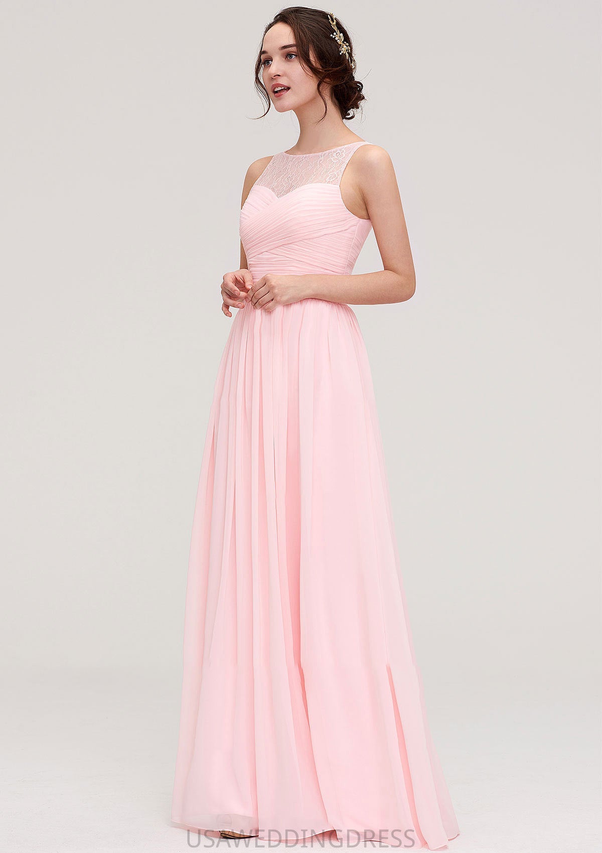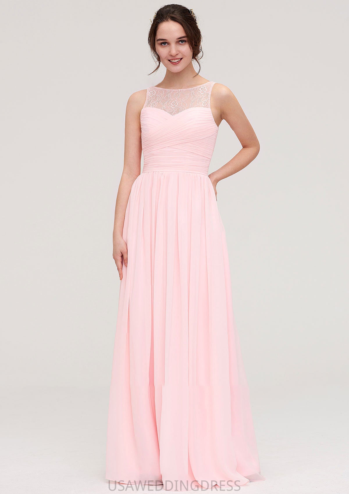 Sleeveless Chiffon A-line/Princess Long/Floor-Length Wedding Party Bridesmaid Dresses With Pleated Lace Avah DSP0025332