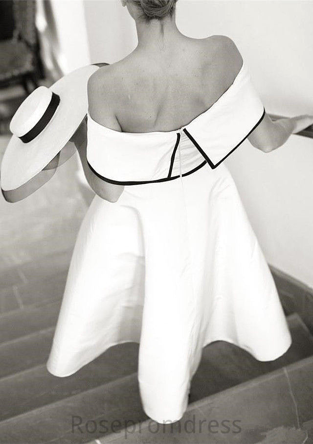 Sleeveless Off-the-Shoulder Tea-Length Satin A-line/Princess Bridesmaid Dresseses With Low Back Maureen SRSP0025590