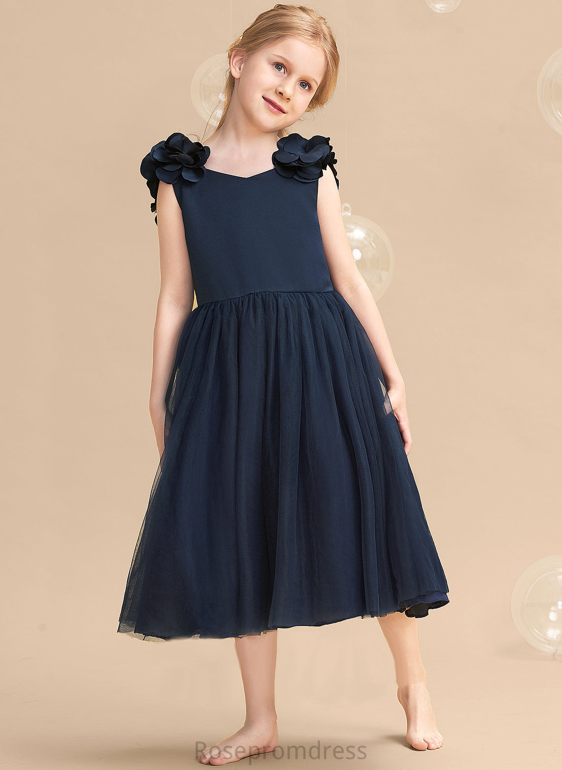 Sleeveless Sally A-Line Flower With Flower Girl Dresses Girl - Tea-length V-neck Flower(s)/Bow(s) Dress Satin/Tulle
