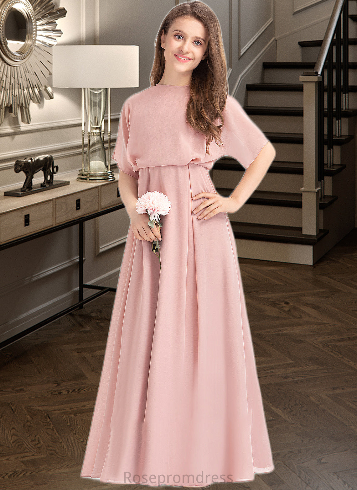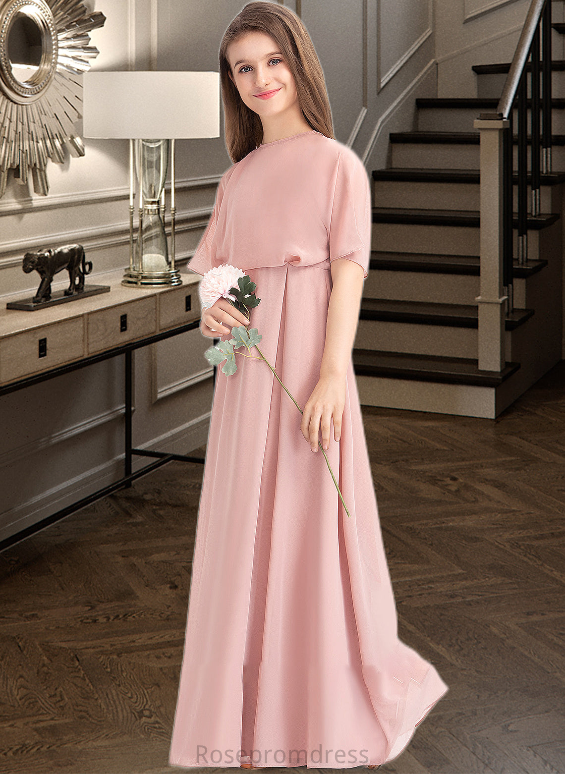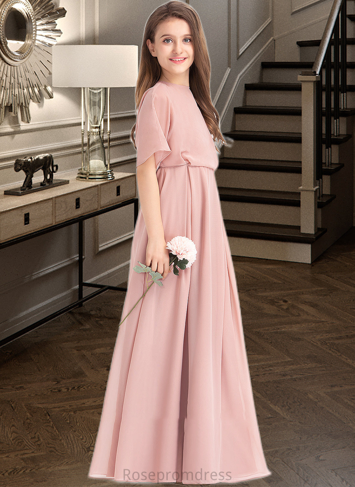 Sloane A-Line Scoop Neck Floor-Length Chiffon Junior Bridesmaid Dress SRSP0013493