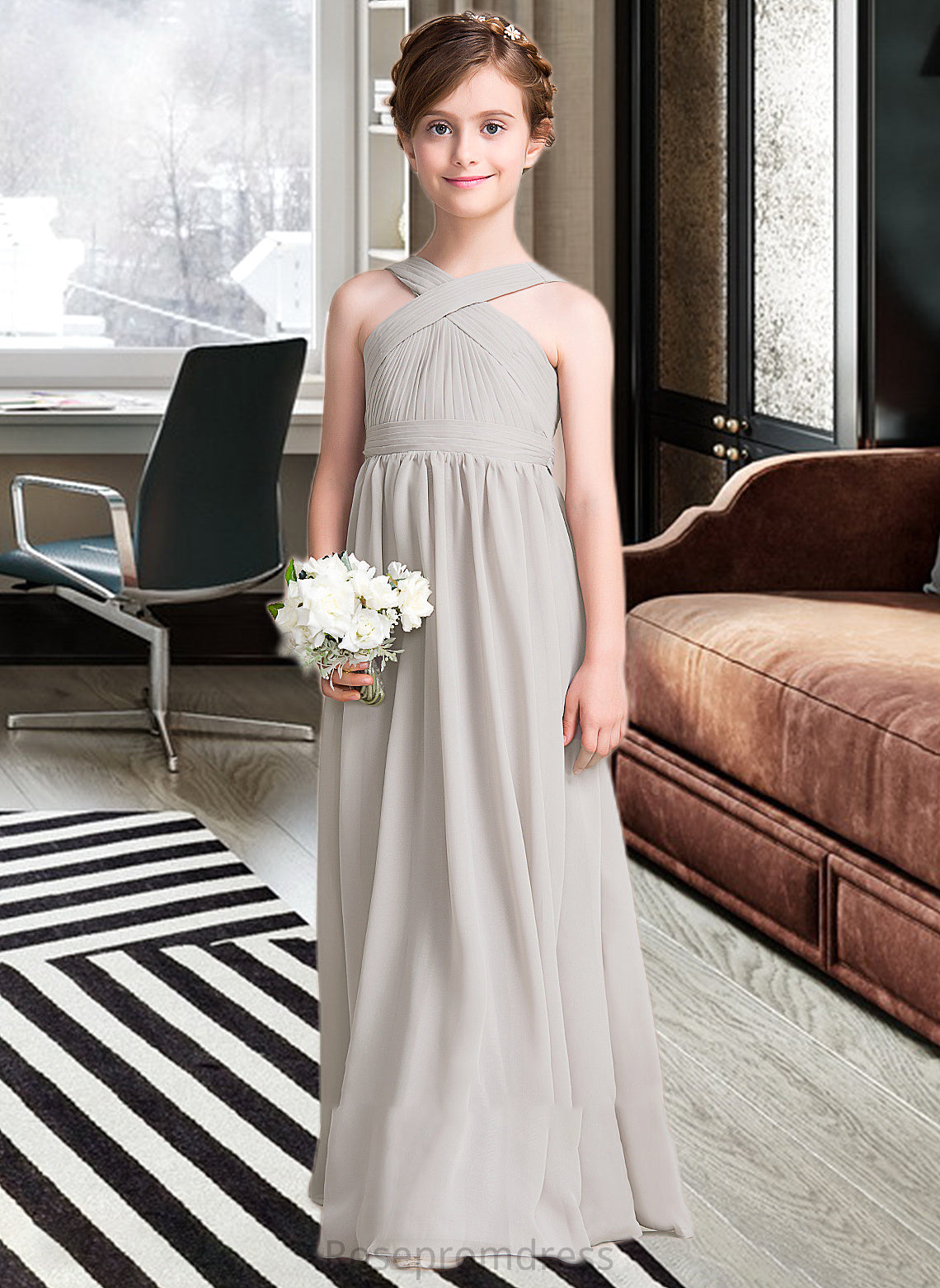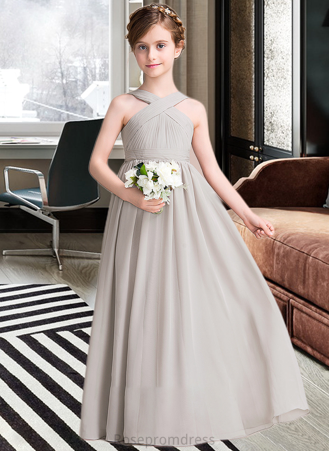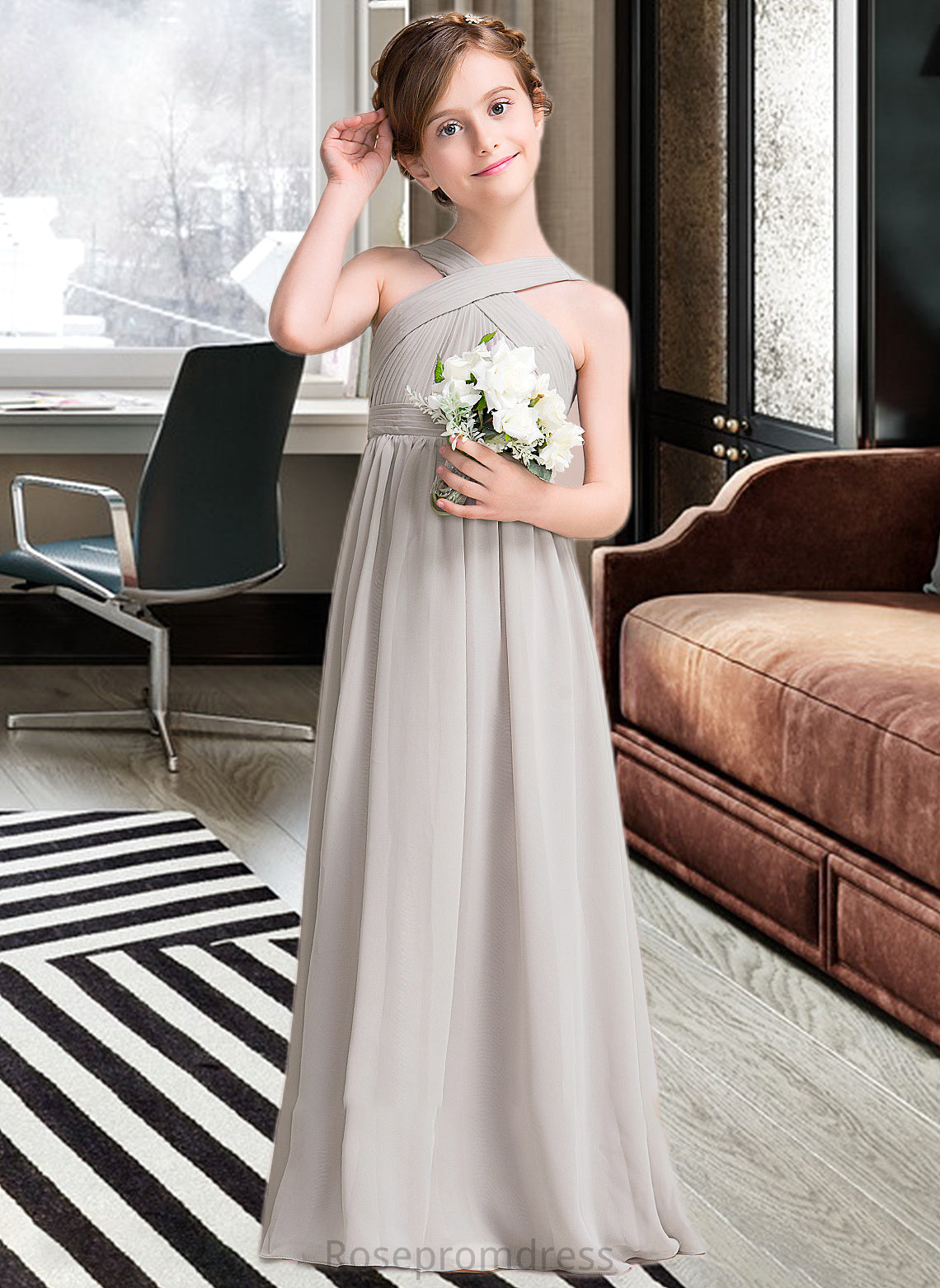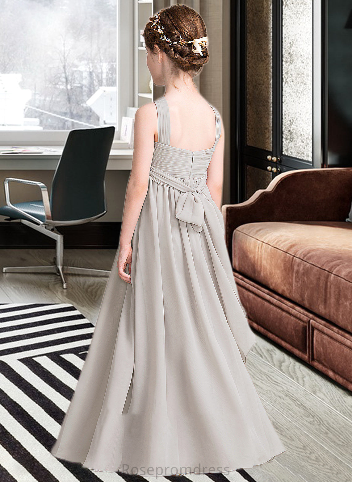 Sloane A-Line V-neck Floor-Length Chiffon Junior Bridesmaid Dress With Ruffle Bow(s) SRSP0013491