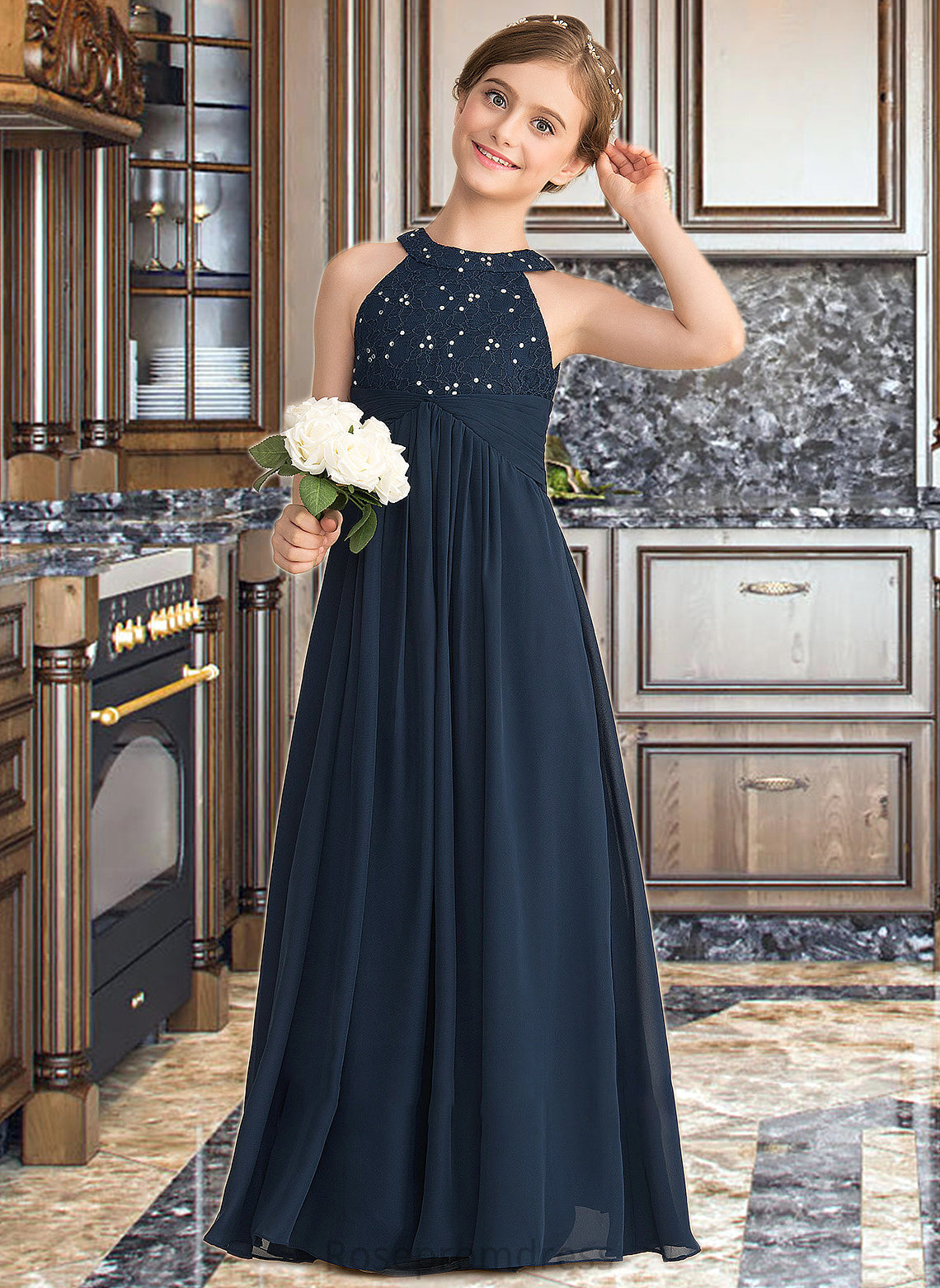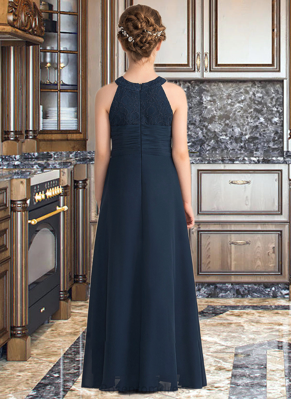Sophia A-Line Scoop Neck Floor-Length Chiffon Lace Junior Bridesmaid Dress With Ruffle Beading SRSP0013488