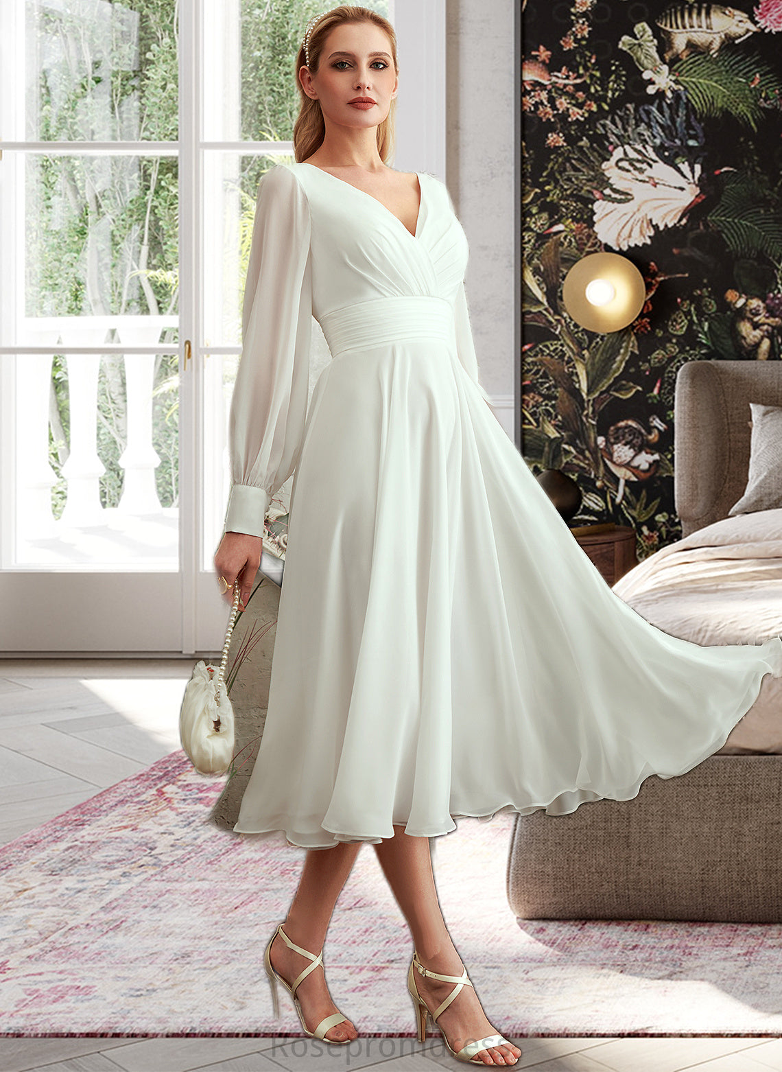 Sophie A-Line V-neck Tea-Length Wedding Dress SRSP0013772