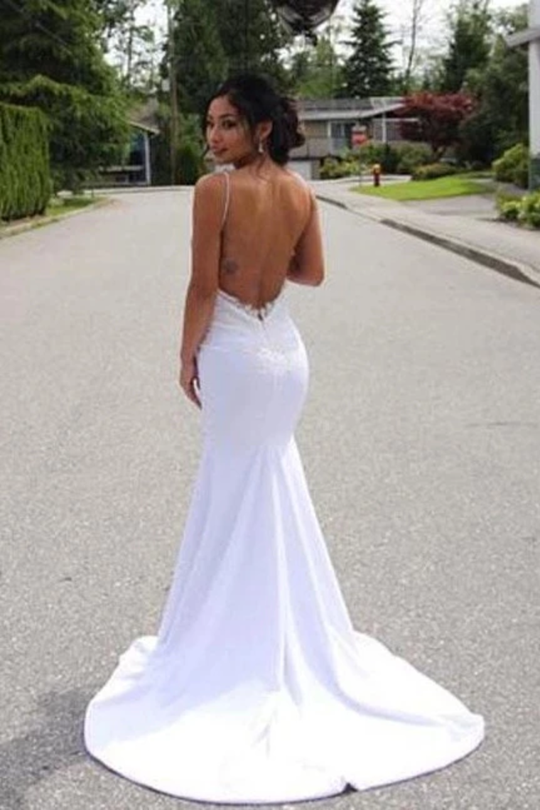 Spaghetti Straps Mermaid Wedding Dress With Appliques Sexy Backless Bridal SRSPGZT9APS