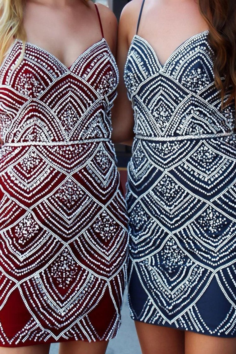 Spaghetti Straps Sheath Beading Homecoming Party Dress
