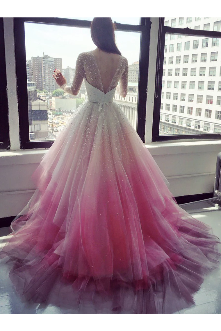 Sparkly Beading Long Sleeve Wedding Dresses With Layered Bridal Gown