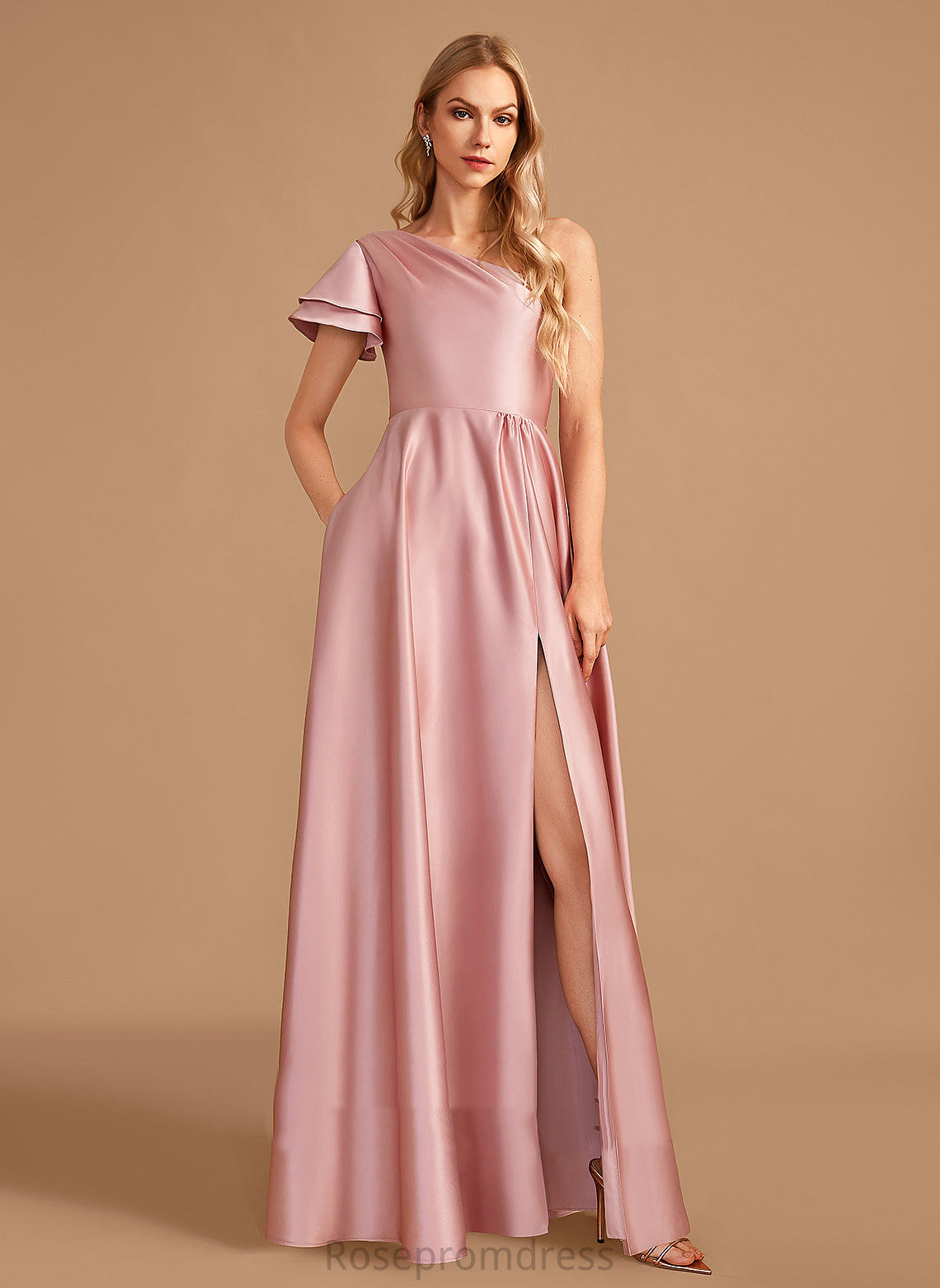 SplitFront Neckline One-Shoulder Length Floor-Length A-Line Embellishment Silhouette Fabric Ava Spaghetti Staps Floor Length Bridesmaid Dresses