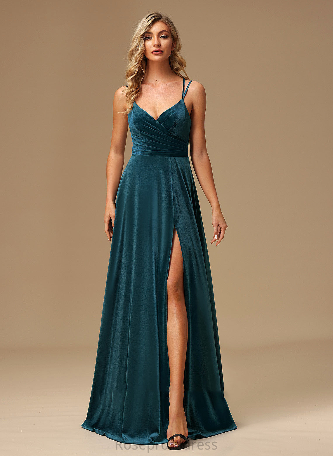 SplitFront V-neck Fabric Length Silhouette Embellishment Neckline A-Line Floor-Length Anna A-Line/Princess Sleeveless Bridesmaid Dresses