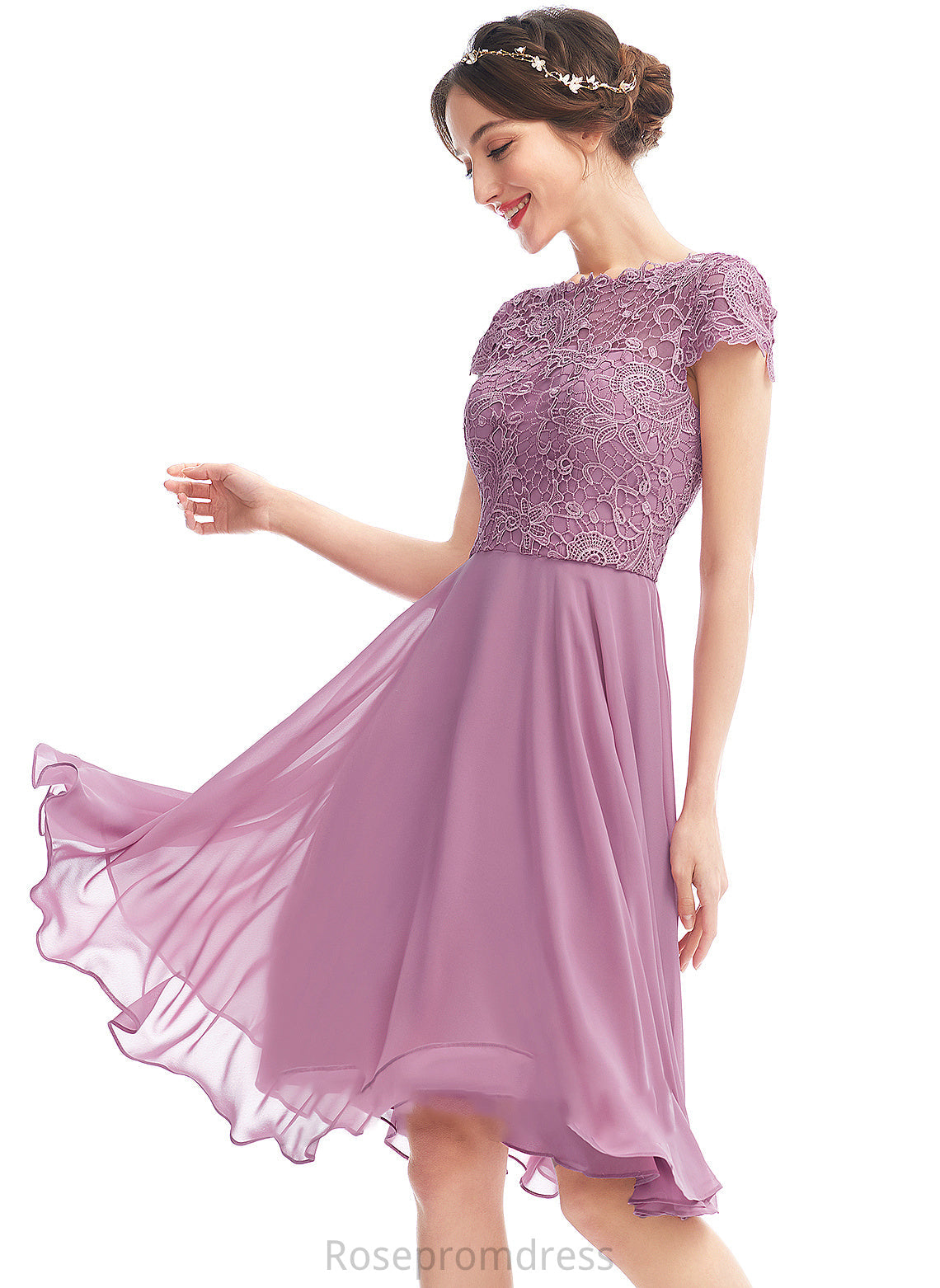 Straps Fabric Lace A-Line Length ScoopNeck Knee-Length Silhouette Neckline Alexis Natural Waist One Shoulder Bridesmaid Dresses