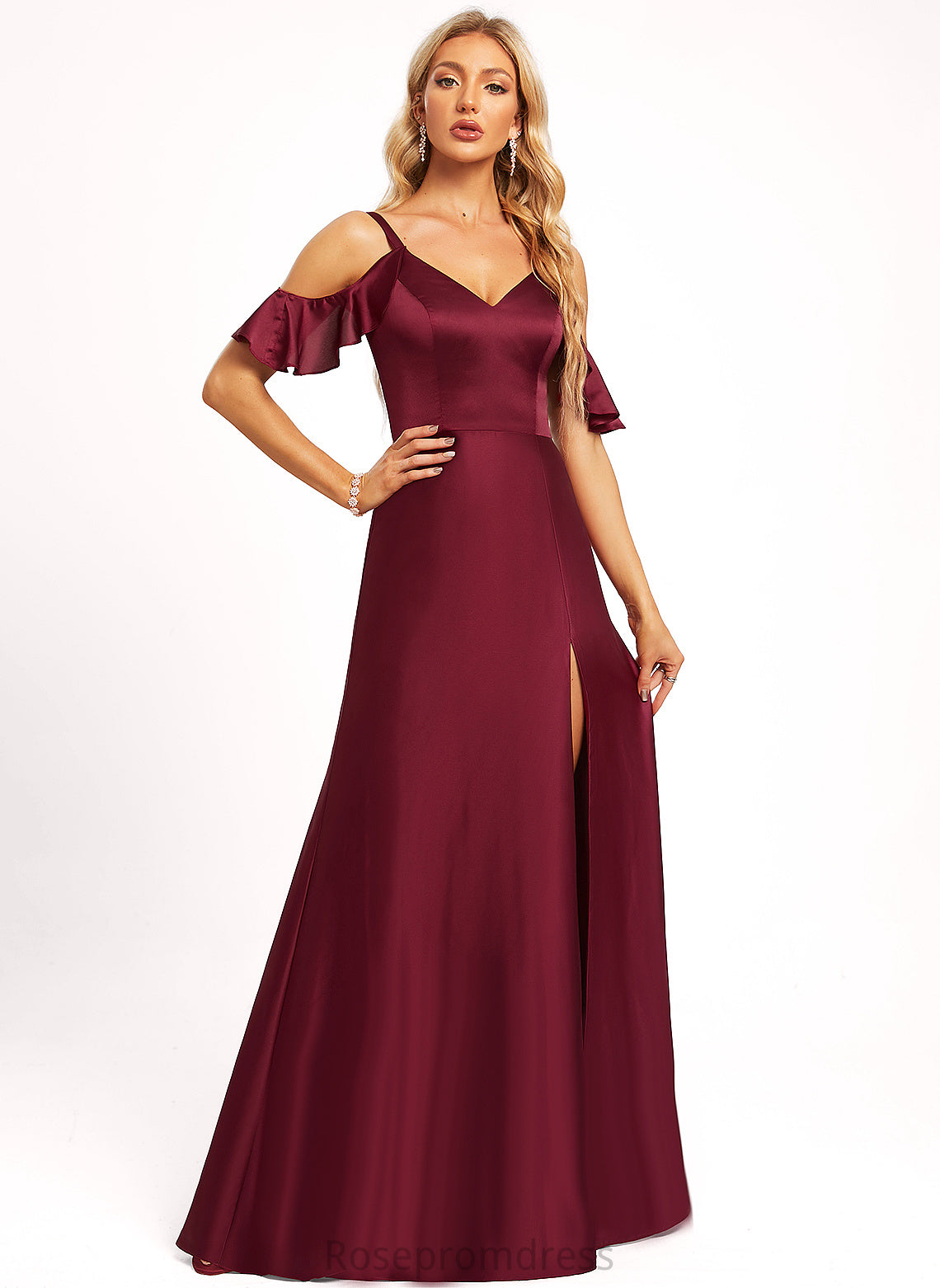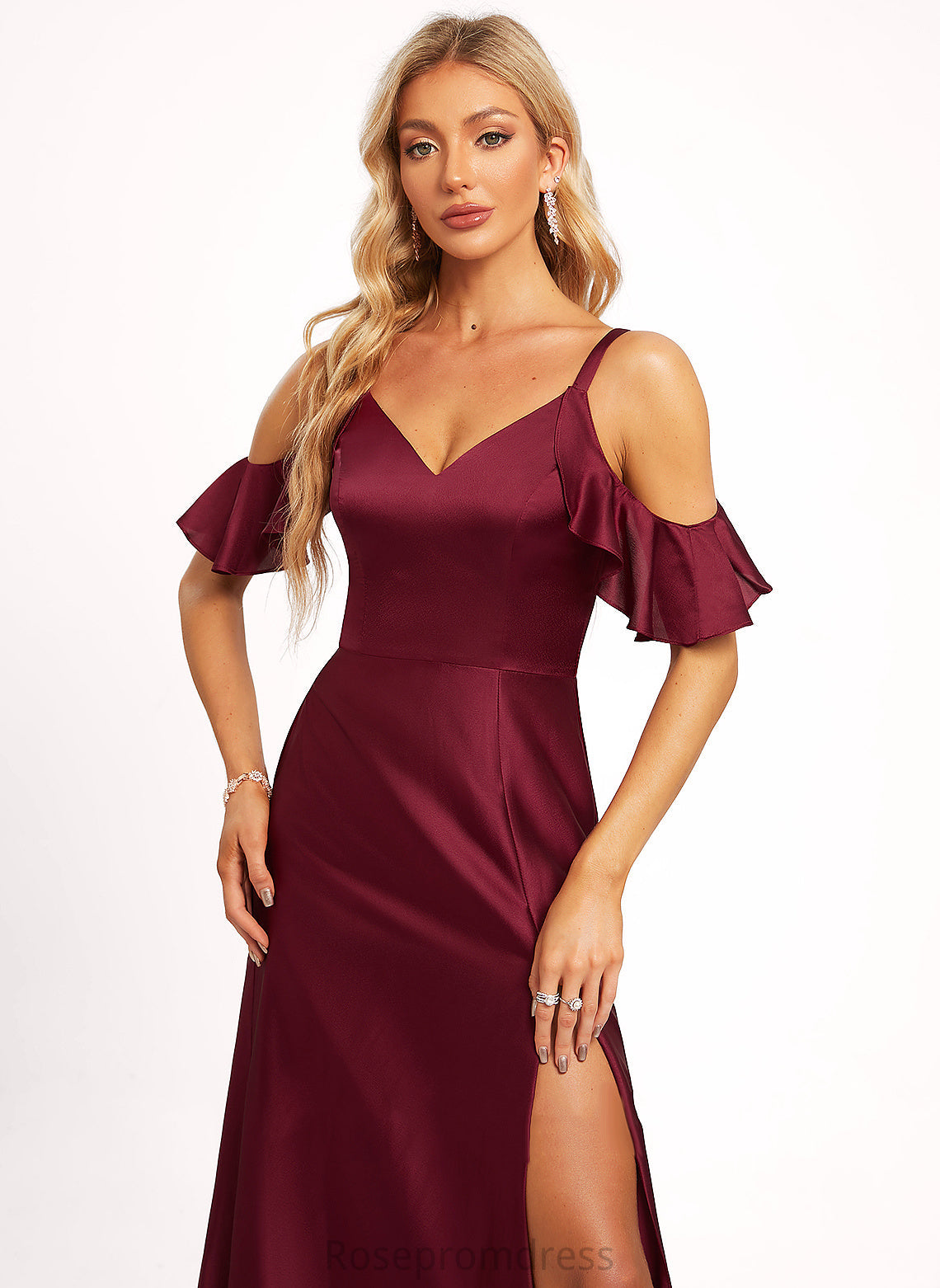 Straps&Sleeves A-line SpaghettiStraps Silhouette Sleeveless BackZip Length BackStyle VBack Embellishment Floor-Length Kianna Bridesmaid Dresses