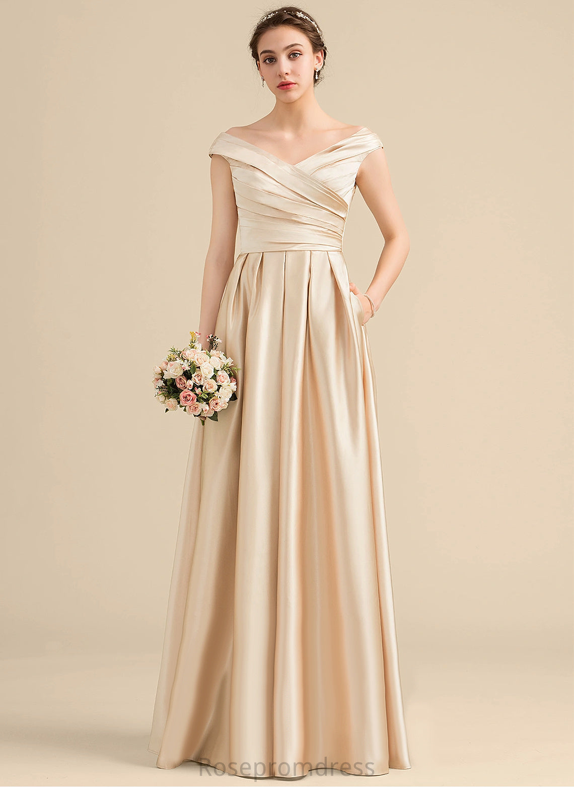 Straps&Sleeves Silhouette Fabric A-line Satin OfftheShoulder Floor-Length Length Neckline Maribel A-Line/Princess Natural Waist Bridesmaid Dresses