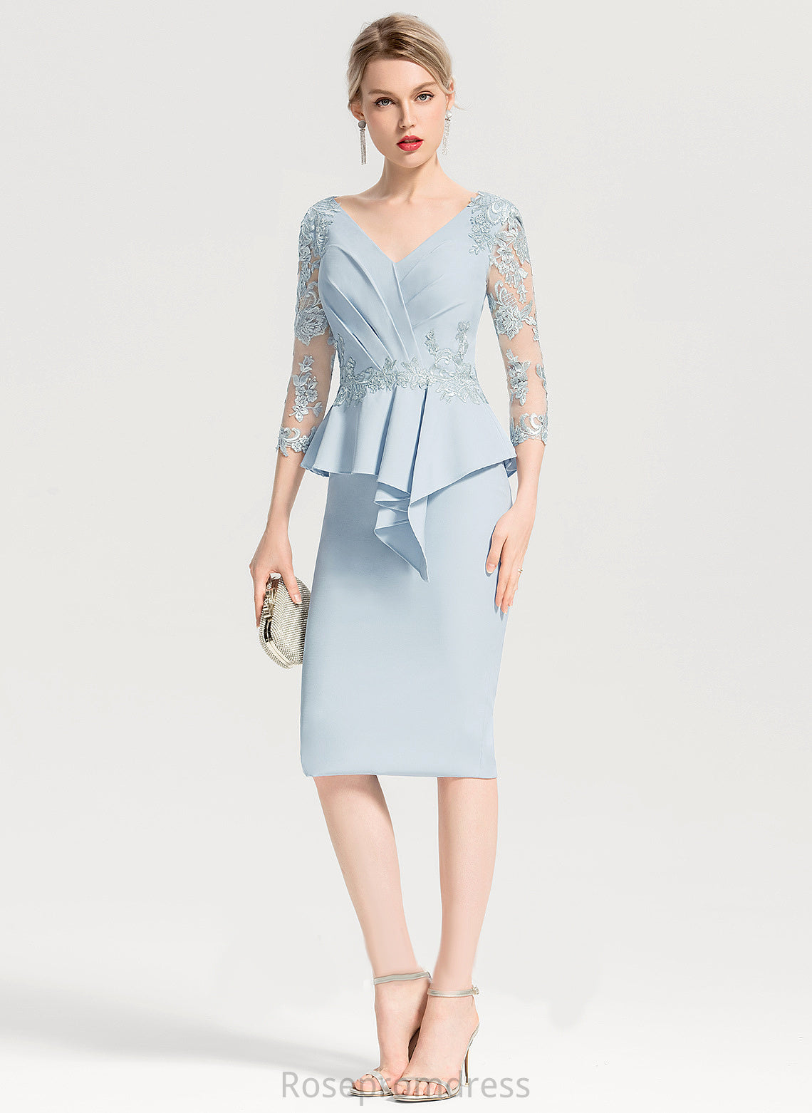 Stretch Kianna V-neck Cocktail Crepe Knee-Length Lace Lace Dress With Appliques Cocktail Dresses Cascading Sheath/Column Ruffles