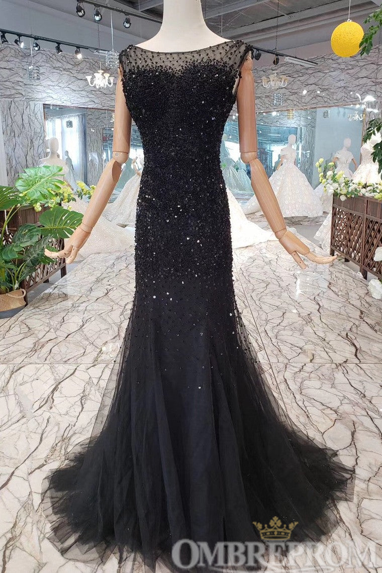 Stunning Black Sleeveless Mermaid Wedding Dress with Beading