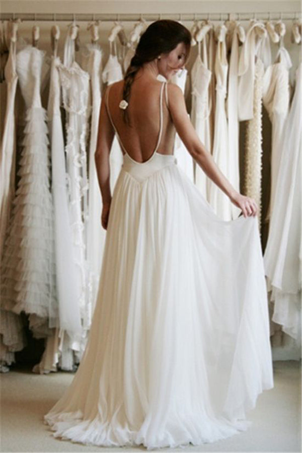 Sweetheart Spaghetti Appliques Backless Beach Wedding Dresses