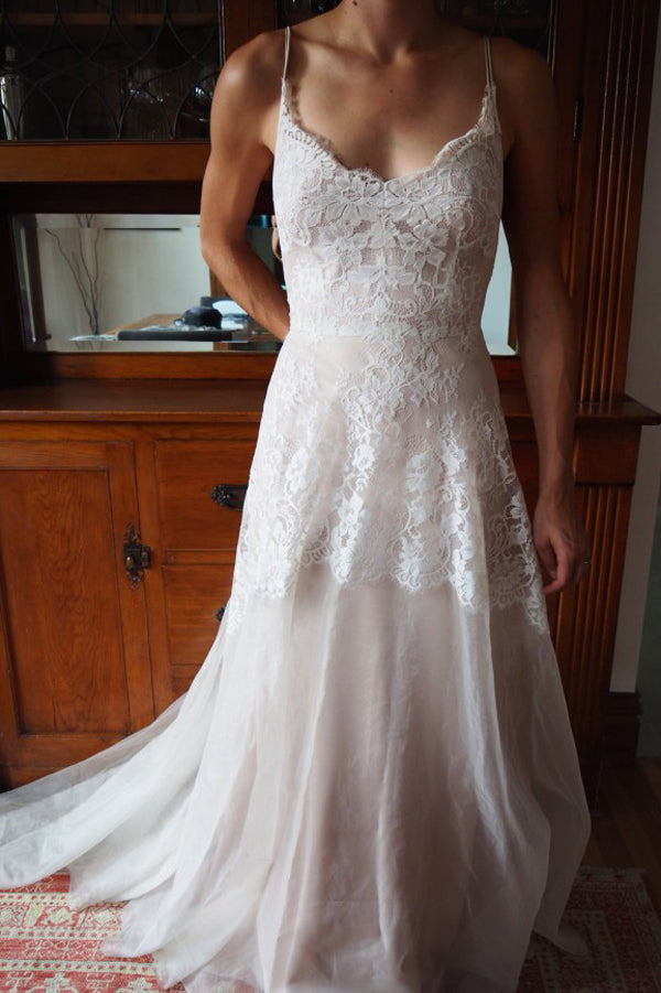 Sweetheart Spaghetti Open Back Appliques Sheer Wedding Dresses