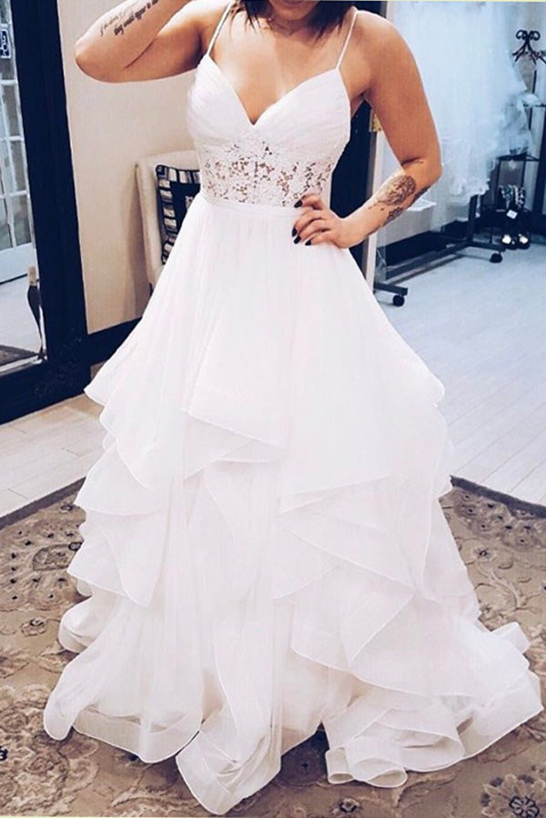 Sweetheart Spaghetti Open Back Ruffles Beach Wedding Dresses
