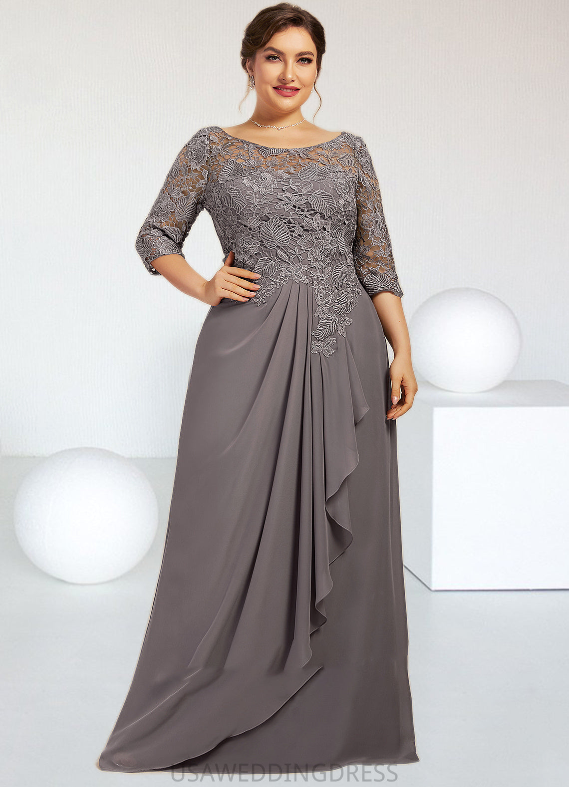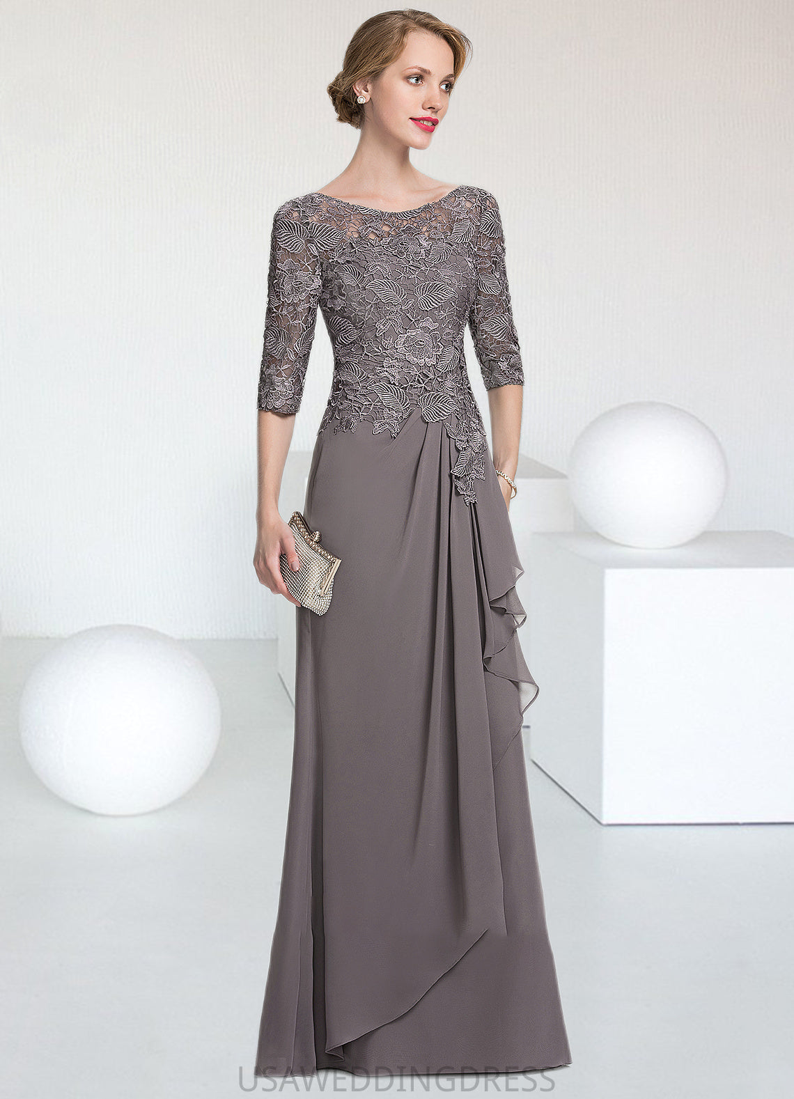 Sydney A-Line Scoop Neck Floor-Length Chiffon Lace Mother of the Bride Dress With Cascading Ruffles DS126P0014608