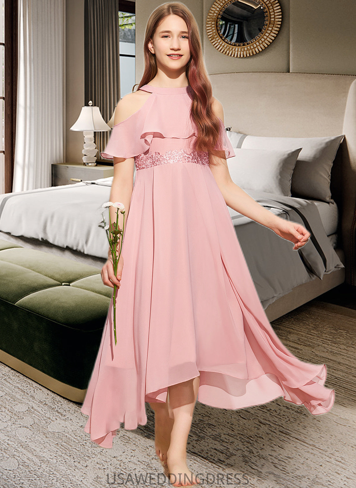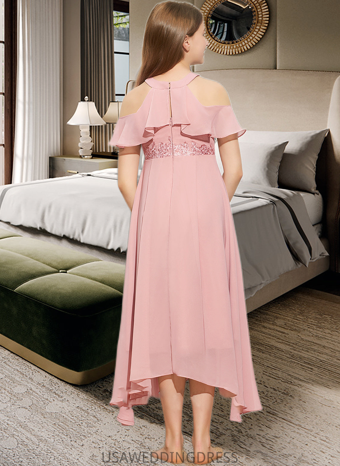 Sydney A-Line Scoop Neck Tea-Length Chiffon Lace Junior Bridesmaid Dress DSP0013414