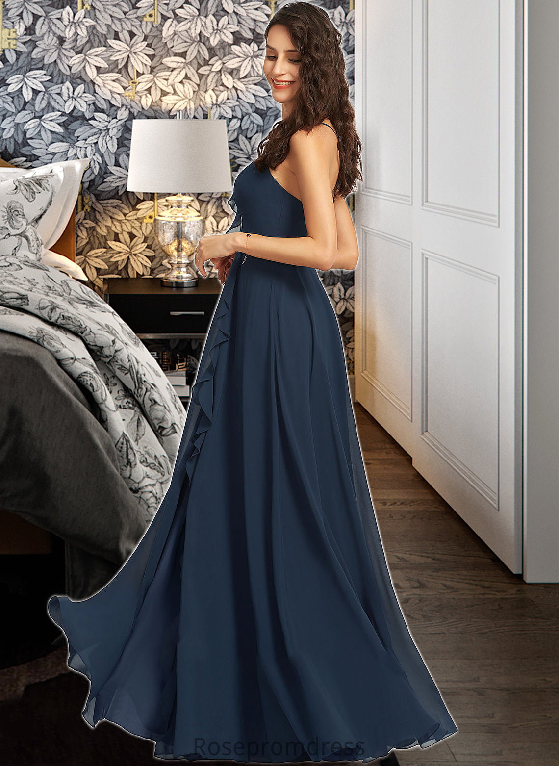 Sydney A-Line V-neck Floor-Length Bridesmaid Dress With Split Front SRSP0012782