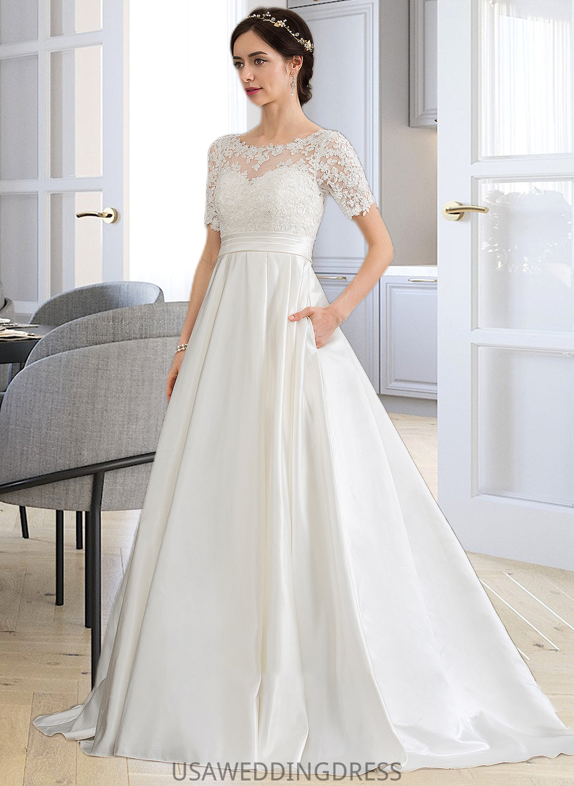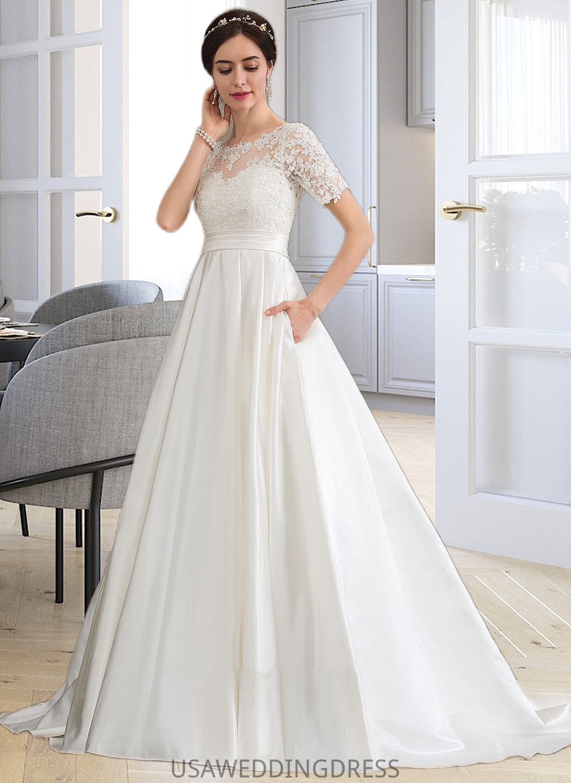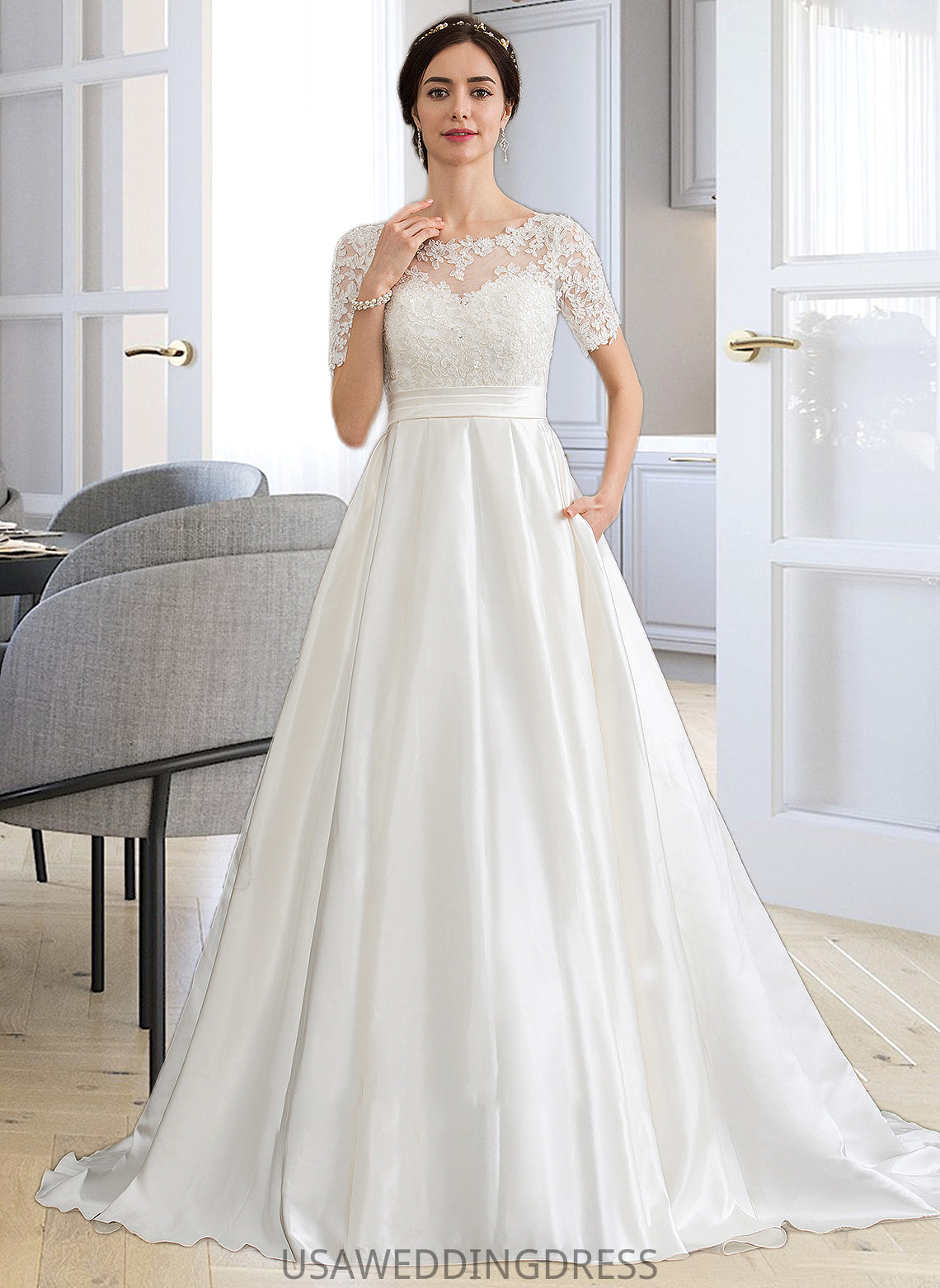 Taniya Ball-Gown/Princess Scoop Neck Court Train Satin Wedding Dress With Beading Sequins Pockets DSP0013777