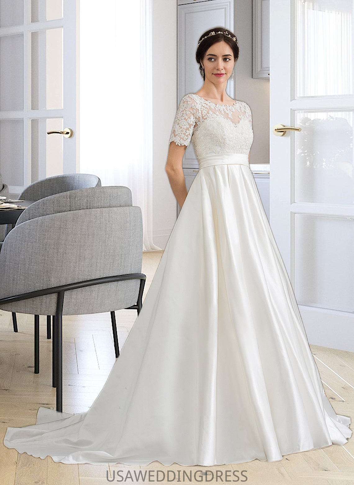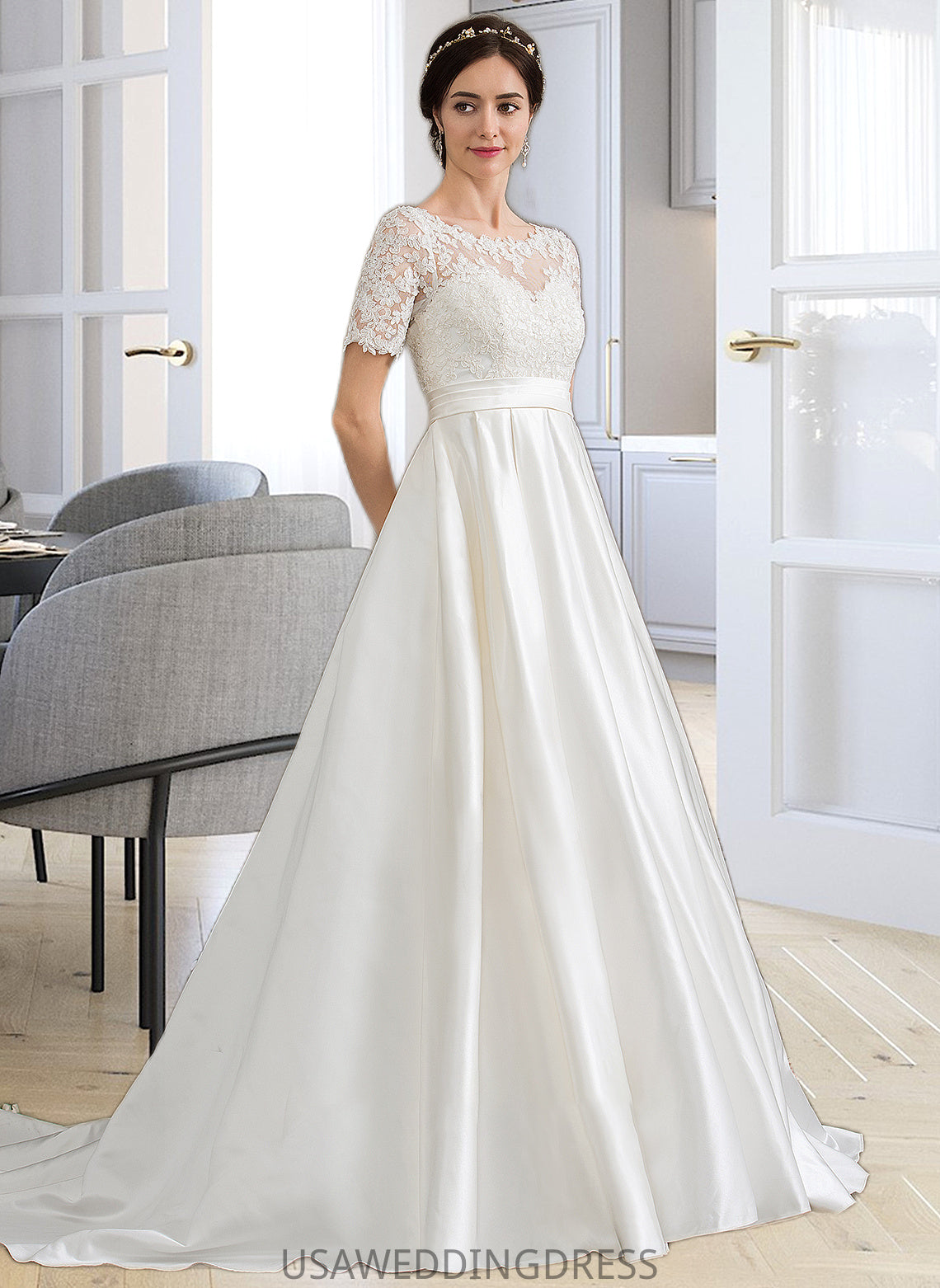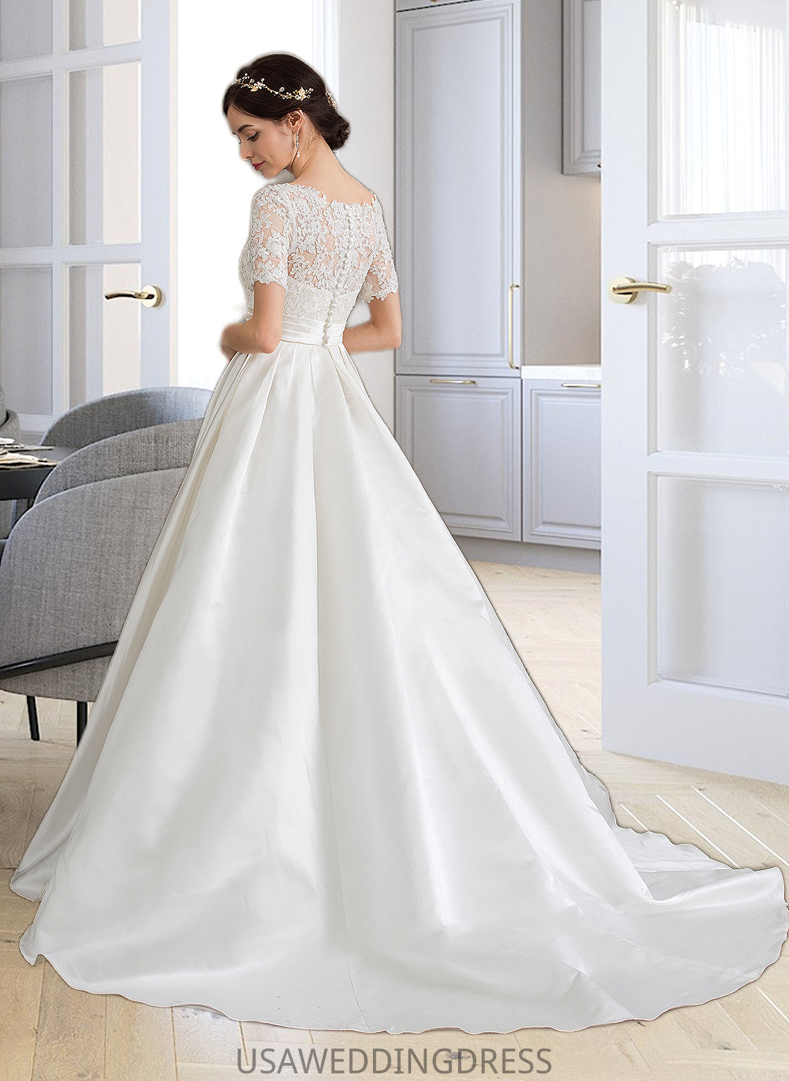 Taniya Ball-Gown/Princess Scoop Neck Court Train Satin Wedding Dress With Beading Sequins Pockets DSP0013777
