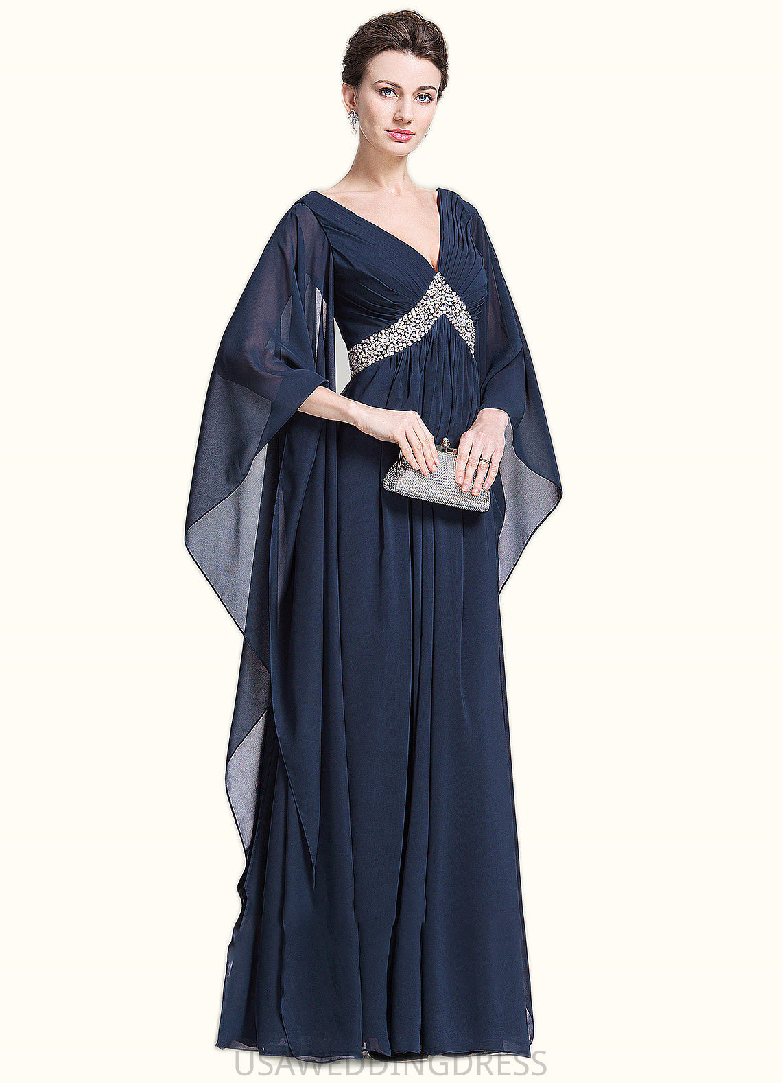 Taniya Empire V-neck Floor-Length Chiffon Mother of the Bride Dress With Ruffle Beading Sequins DS126P0014724