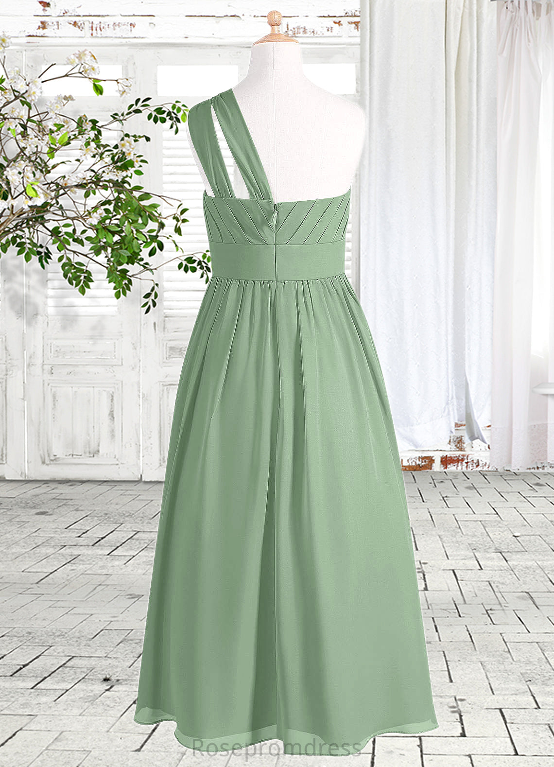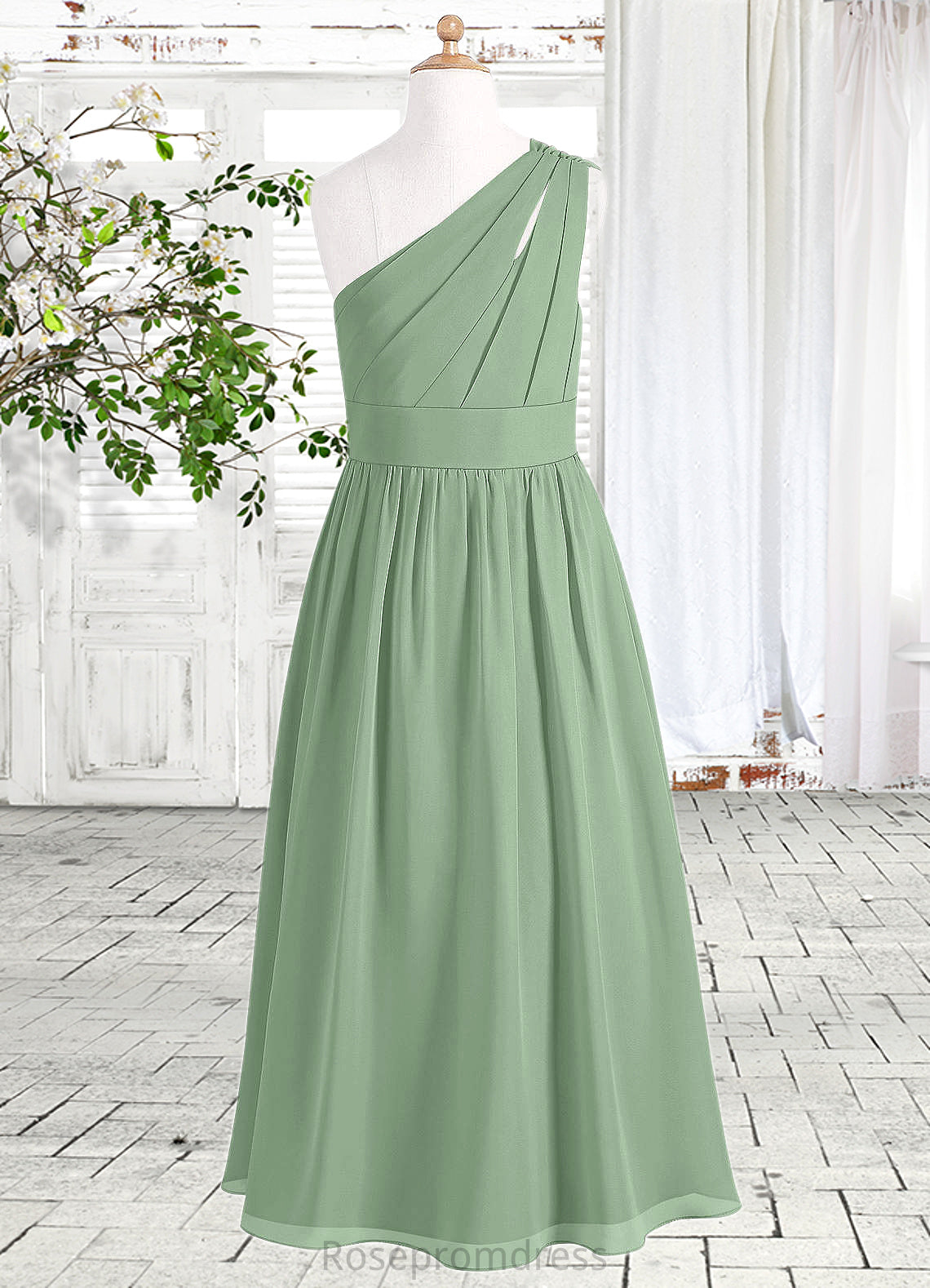 Tara A-Line Pleated Chiffon Floor-Length Junior Bridesmaid Dress SRSP0019975