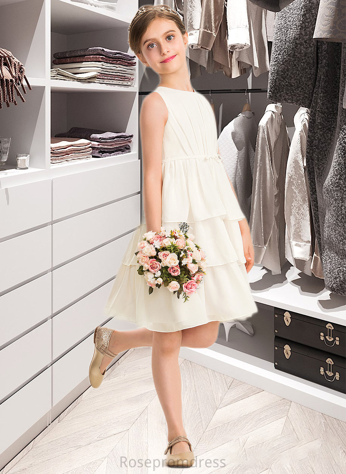 Taryn A-Line Scoop Neck Knee-Length Chiffon Junior Bridesmaid Dress With Bow(s) Cascading Ruffles SRSP0013487