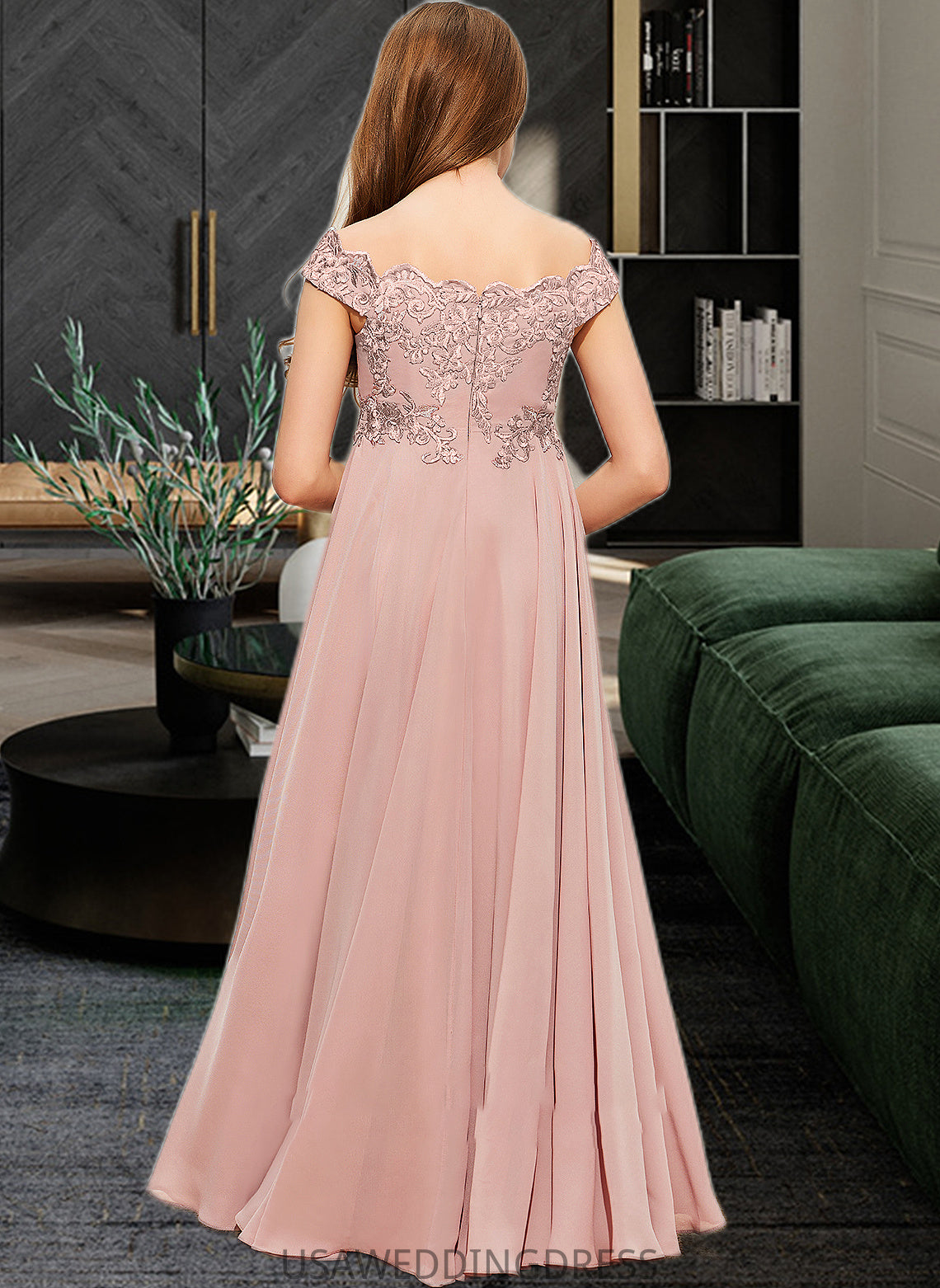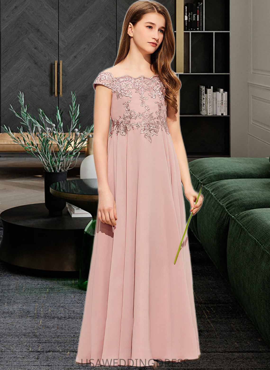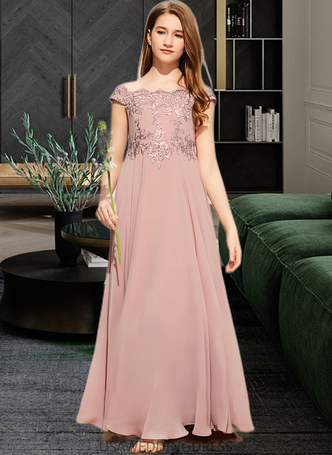 Taylor A-Line Off-the-Shoulder Floor-Length Chiffon Lace Junior Bridesmaid Dress DSP0013640