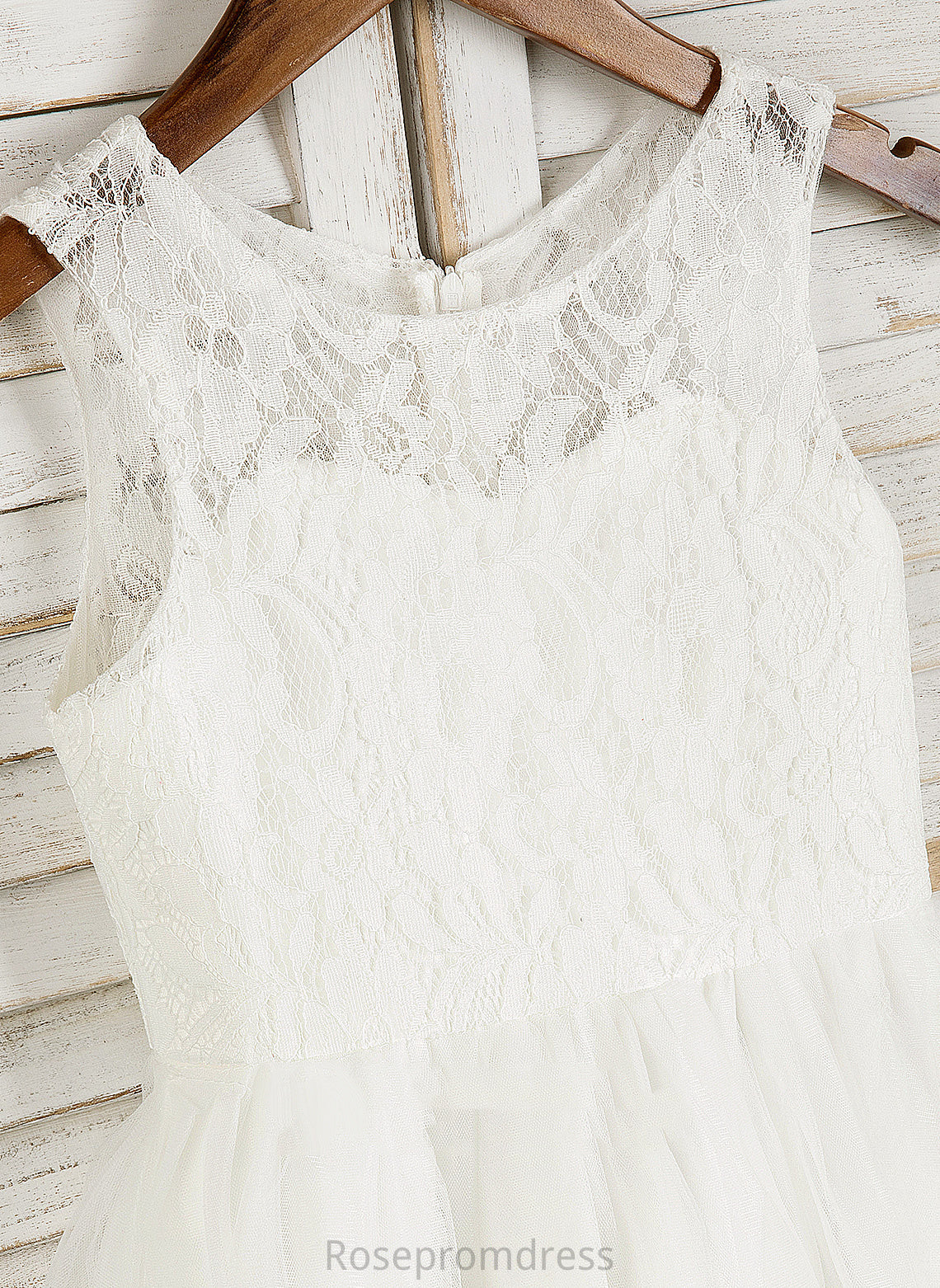 Tea-length Flower Girl Dress Sleeveless Sash/Bow(s) With Neck A-Line/Princess Flower Girl Dresses Trinity Tulle/Lace Scoop -