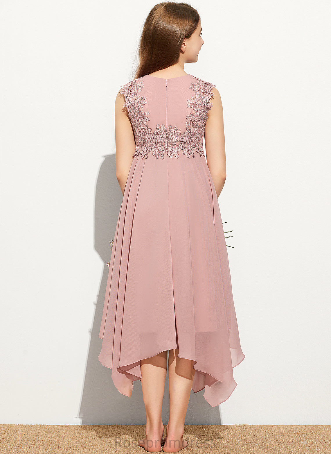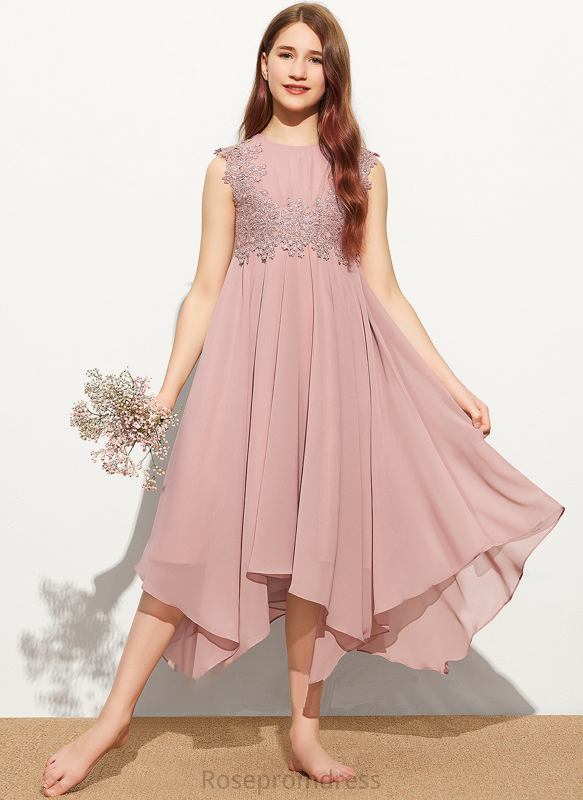 Tea-Length Junior Bridesmaid Dresses Scoop Tess Neck A-Line Chiffon Lace