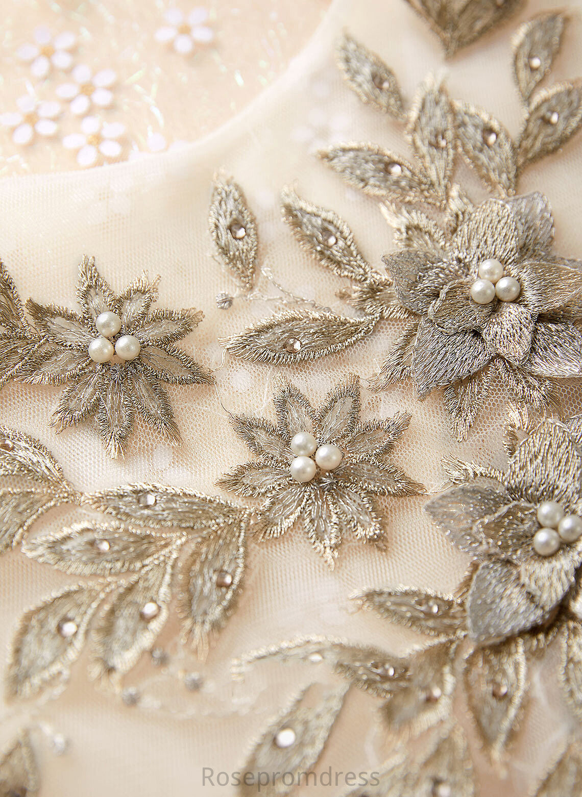 Tea-length Tulle/Lace Scoop Flower Dress Sleeveless A-Line - Beading/V Flower Girl Dresses Neck Girl Jakayla With Back