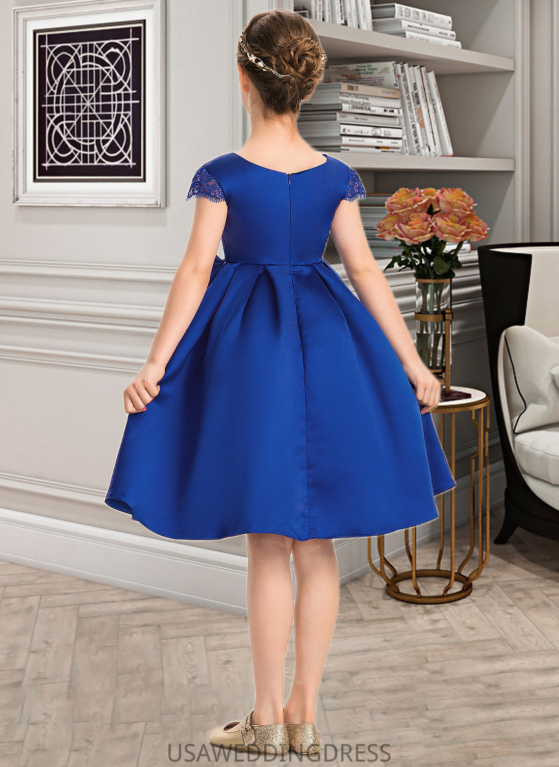 Thalia A-Line Scoop Neck Knee-Length Satin Junior Bridesmaid Dress With Lace Bow(s) DSP0013422