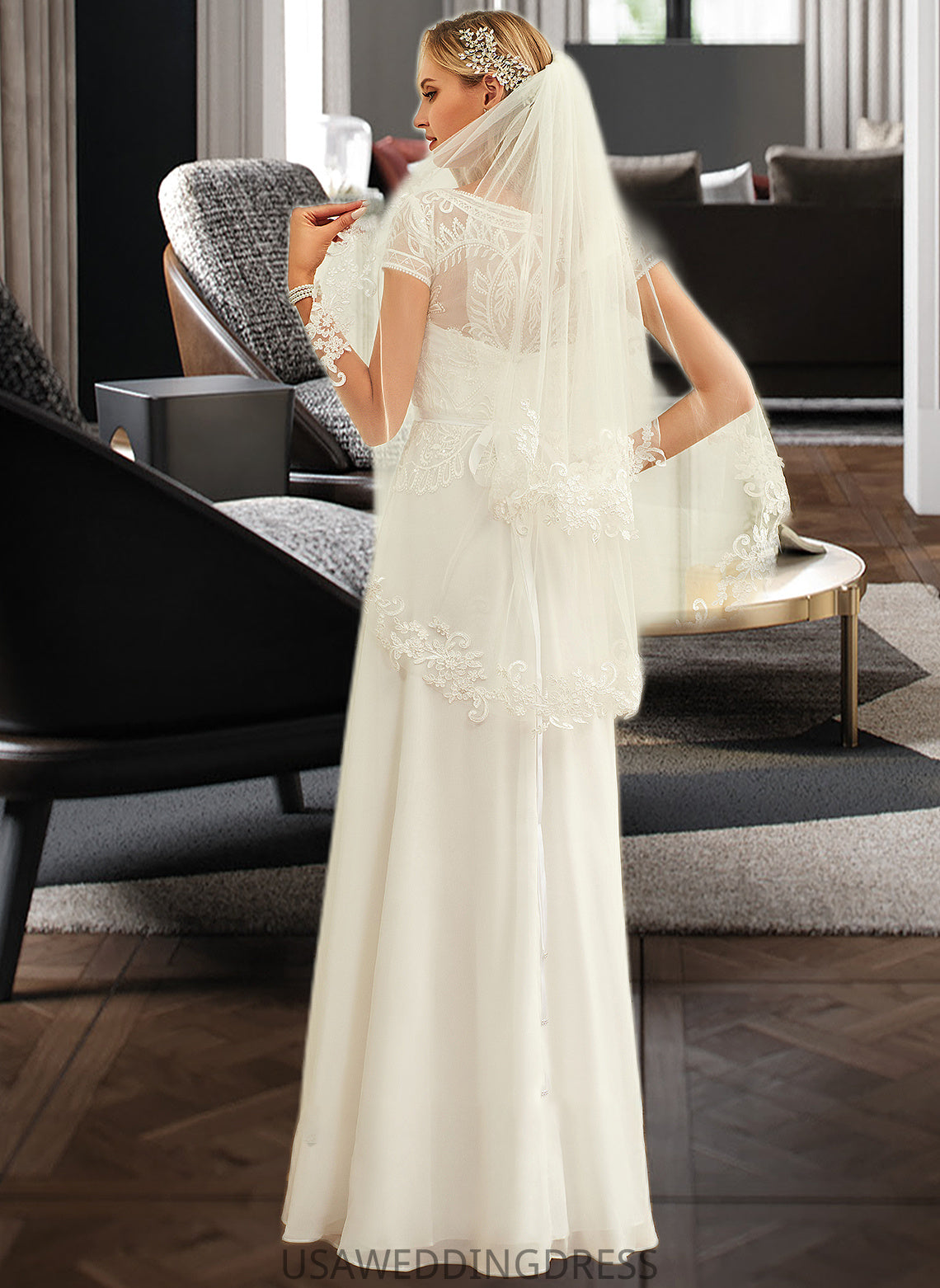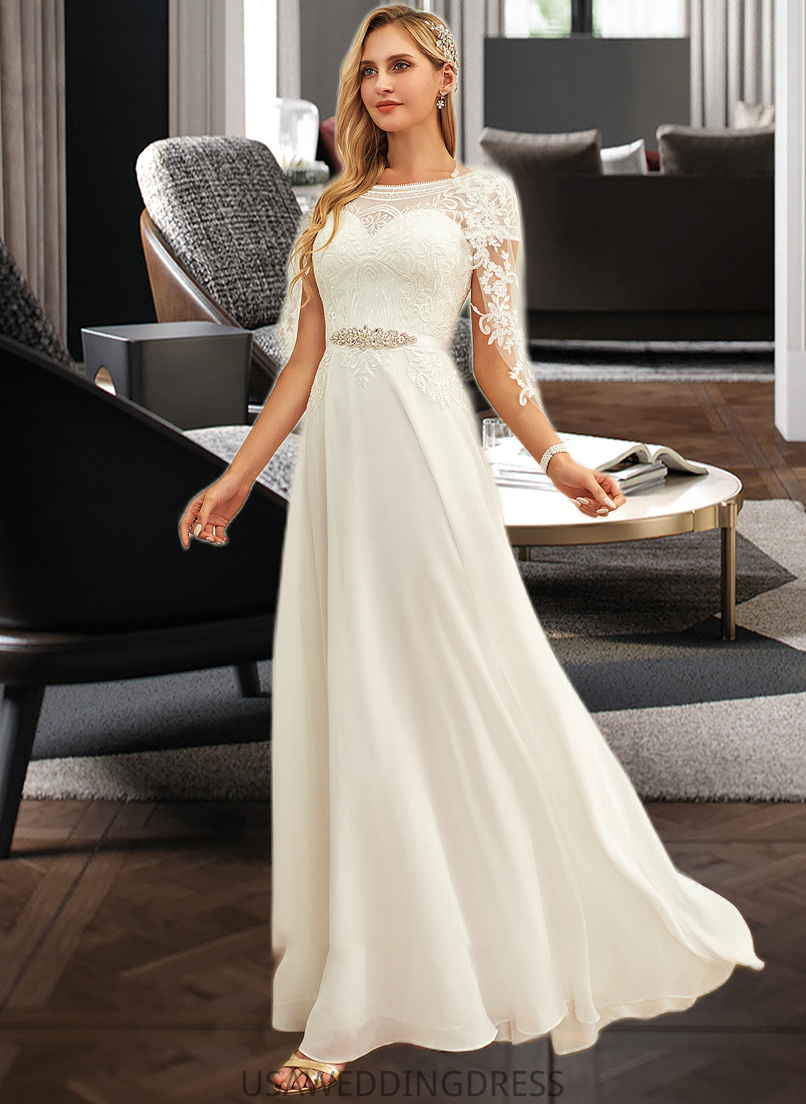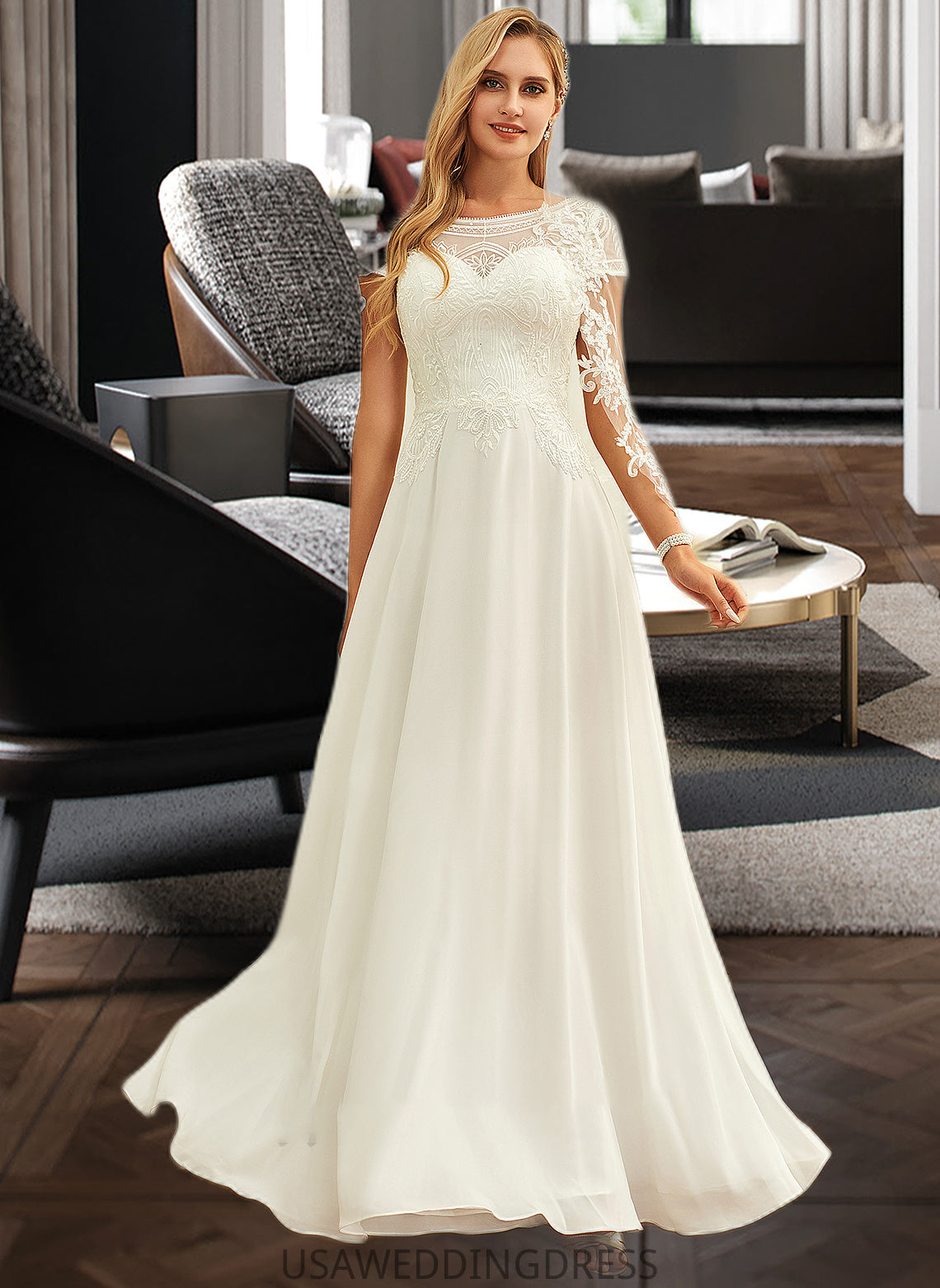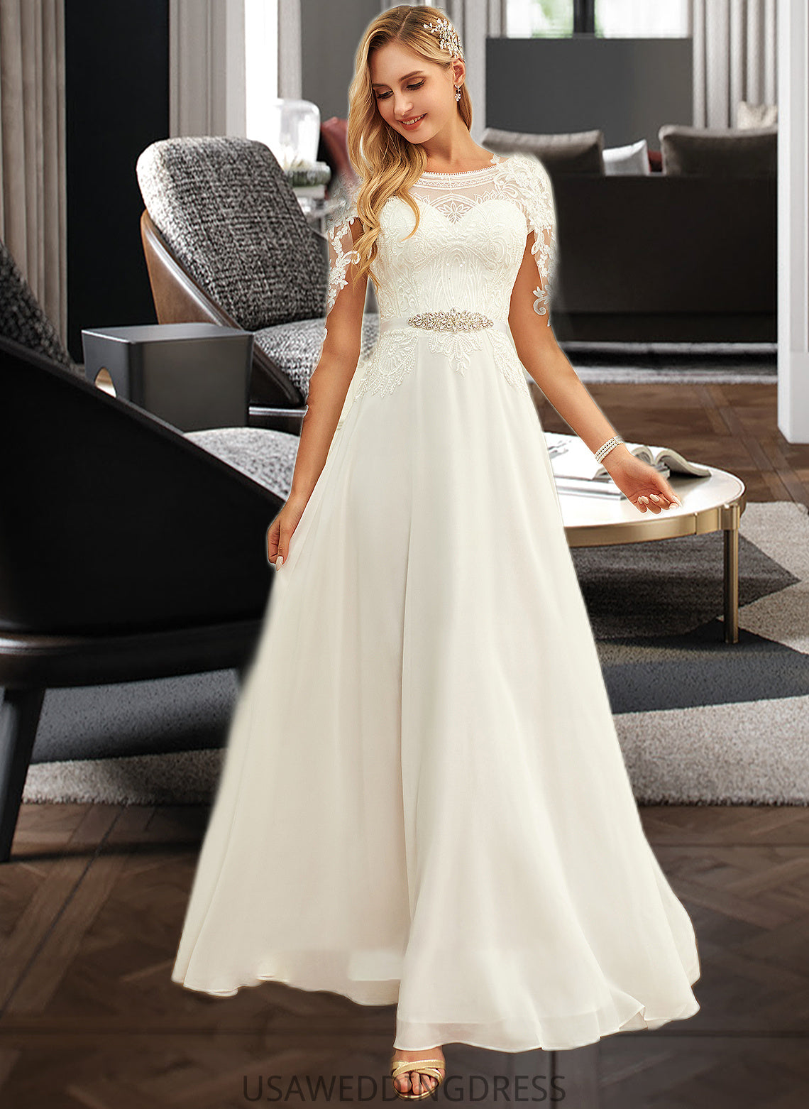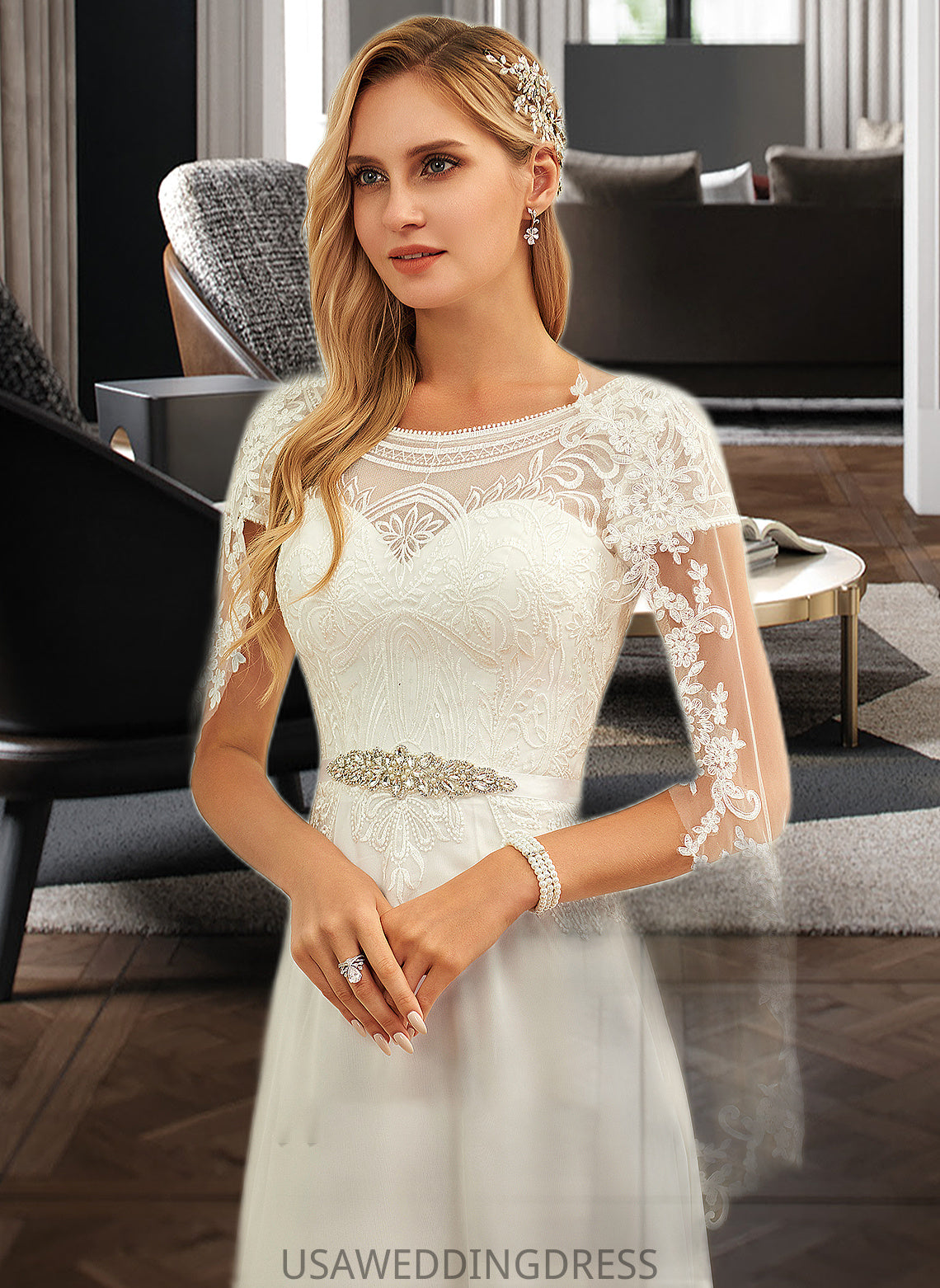 Tori A-Line Scoop Neck Floor-Length Chiffon Lace Wedding Dress With Sequins DSP0013775