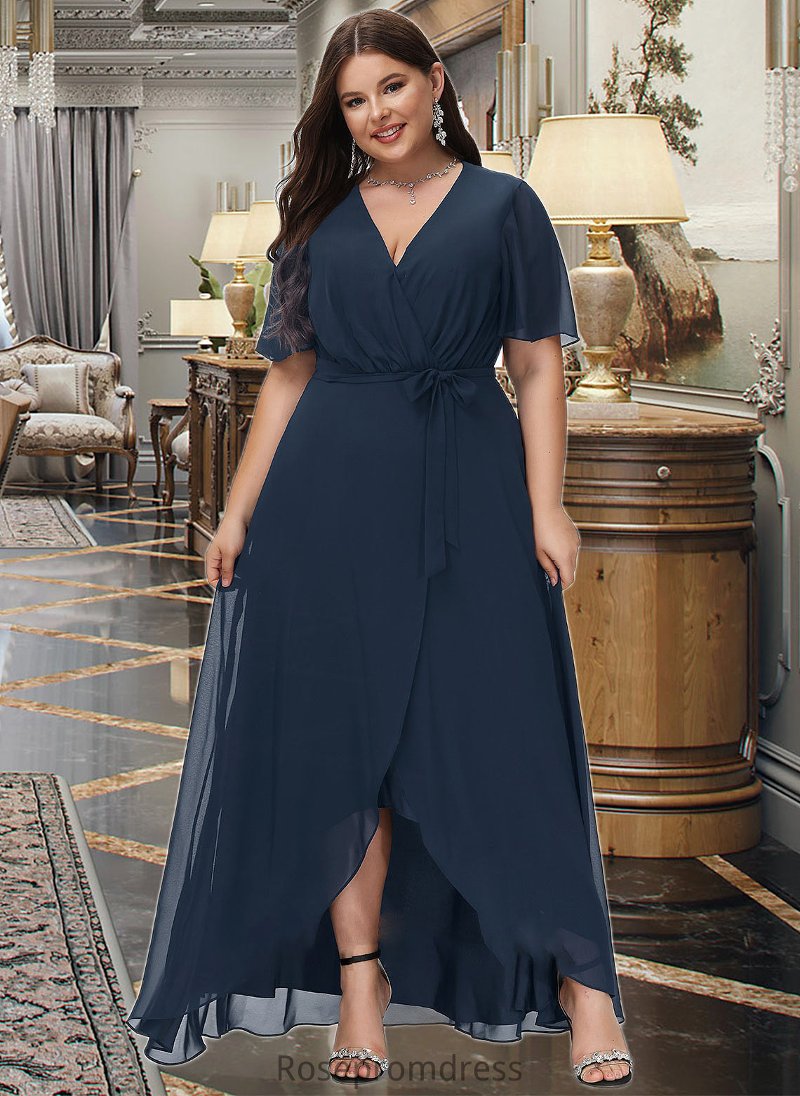 Tori A-Line V-neck Asymmetrical Chiffon Bridesmaid Dress With Bow(s) SRSP0012783