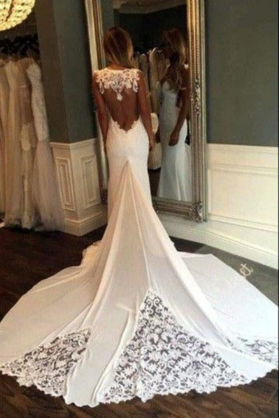 Unique Mermaid Sheer Neck Wedding Dresses with Lace Unique Ivory Bridal Dresses JS920