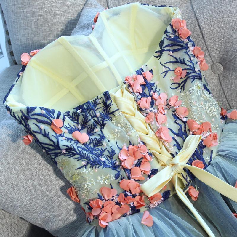 Unique Sweetheart Spaghetti Straps Tulle Mini Lace up Homecoming Dress with Flowers RS782