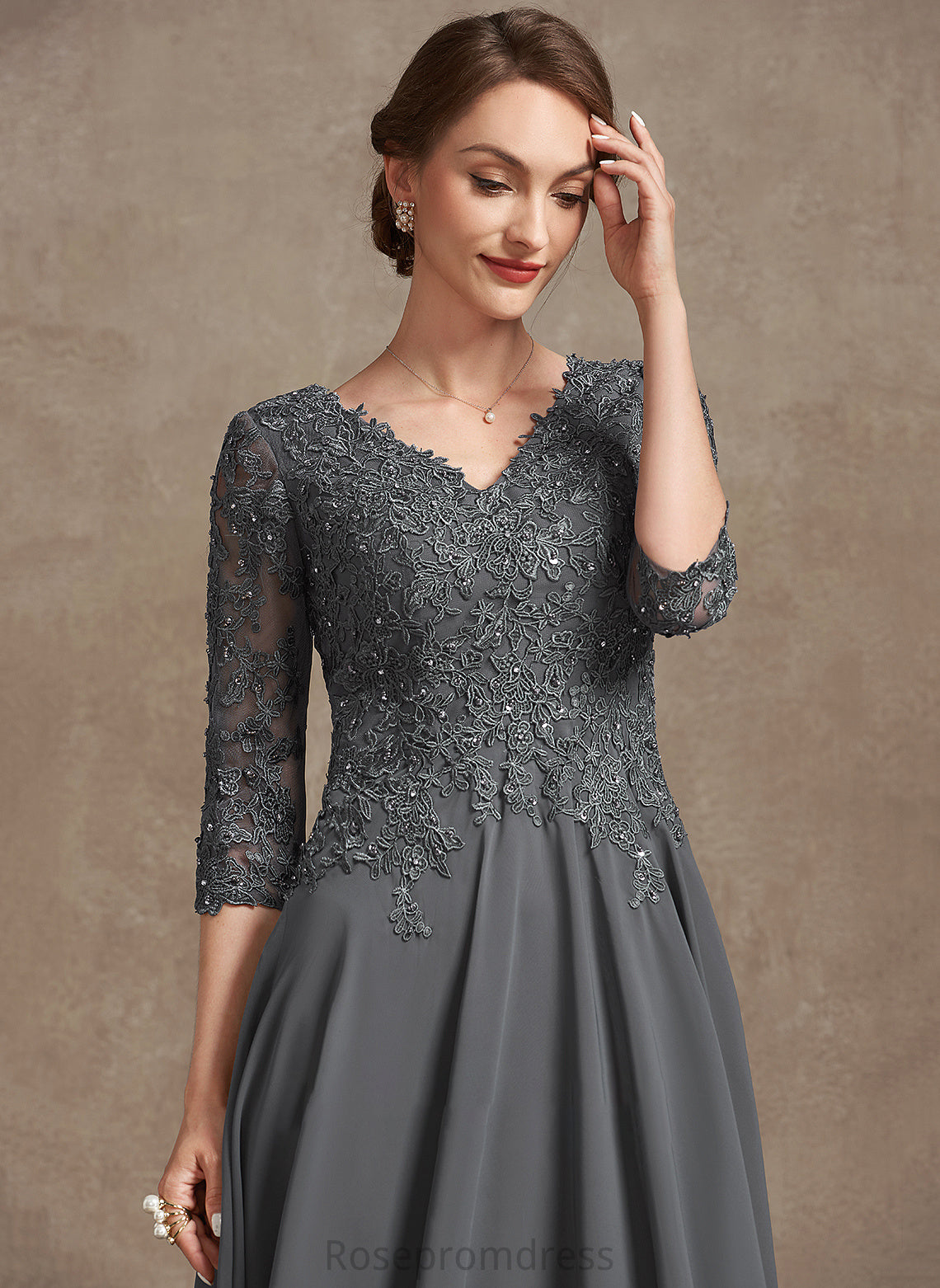 V-neck A-Line Dress Mother Chiffon With Beading Sequins the of Lace Tea-Length Kassandra Mother of the Bride Dresses Bride