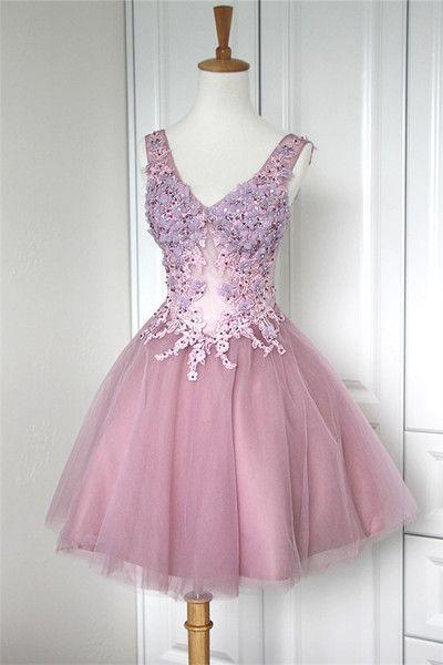 V Neck Alison Lace Pink Homecoming Dresses Gowns CD1986