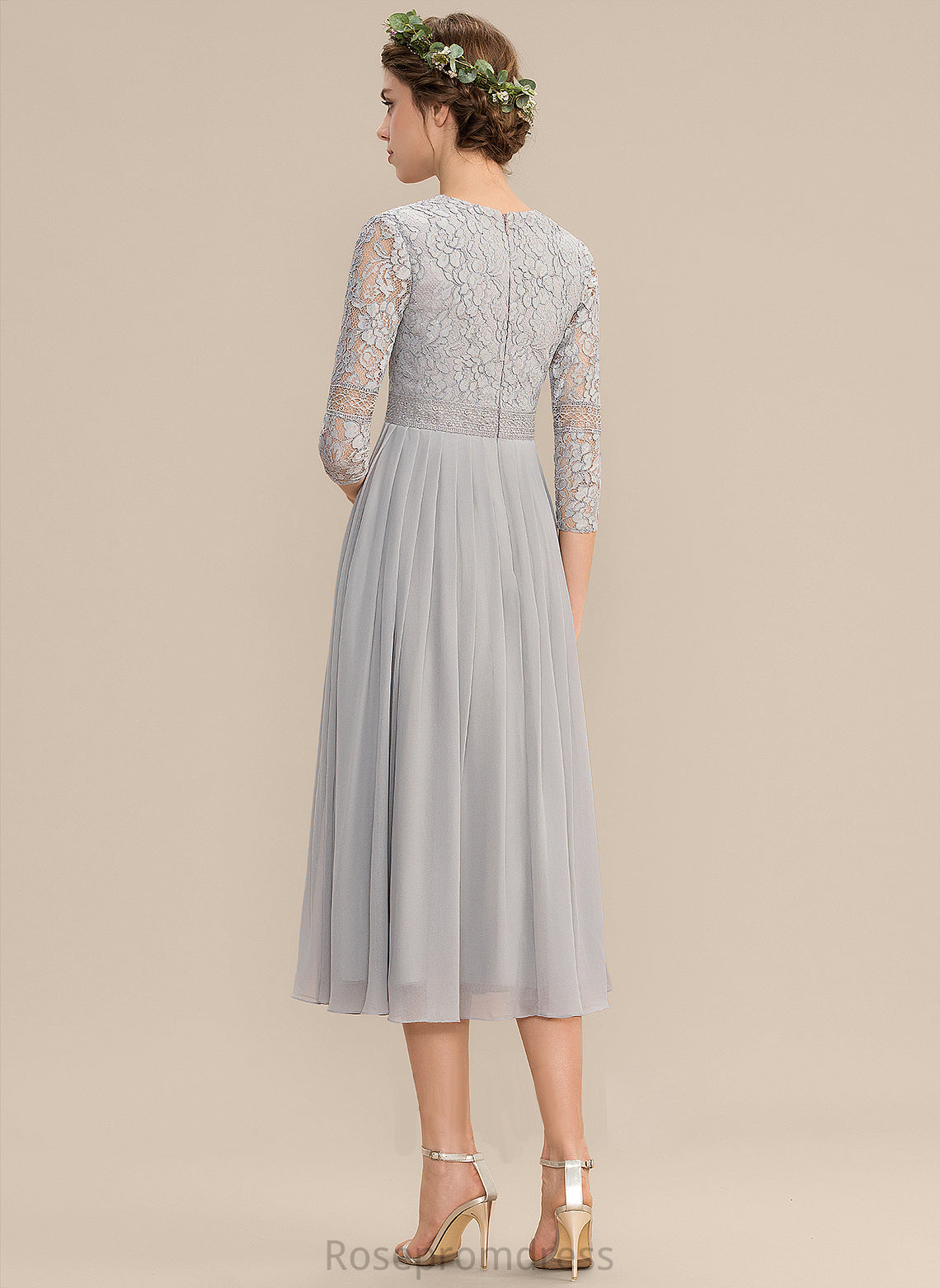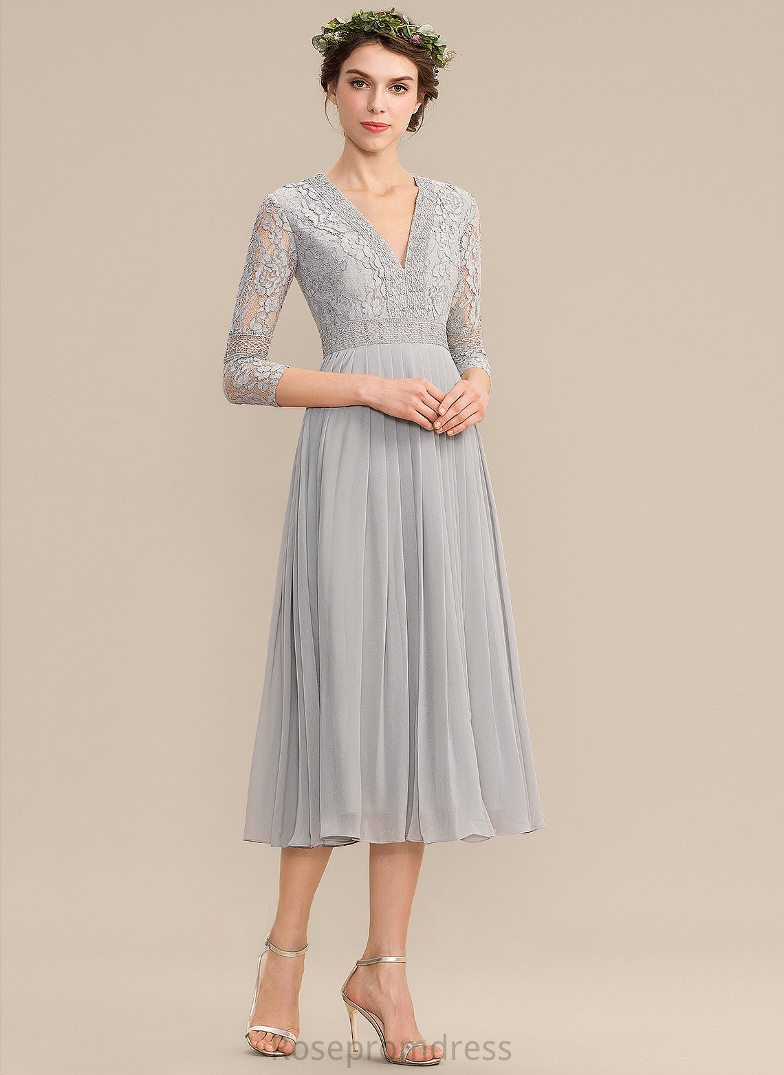 V-neck Embellishment Length Pleated Silhouette Tea-Length Neckline Fabric A-Line Elianna Bridesmaid Dresses