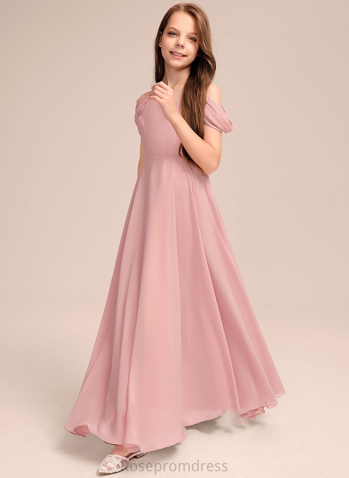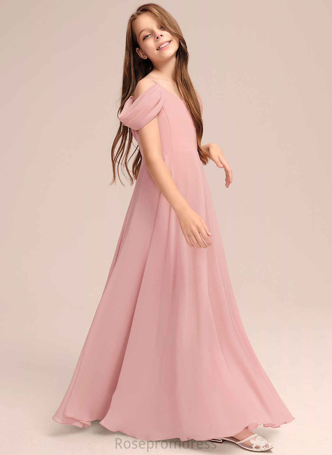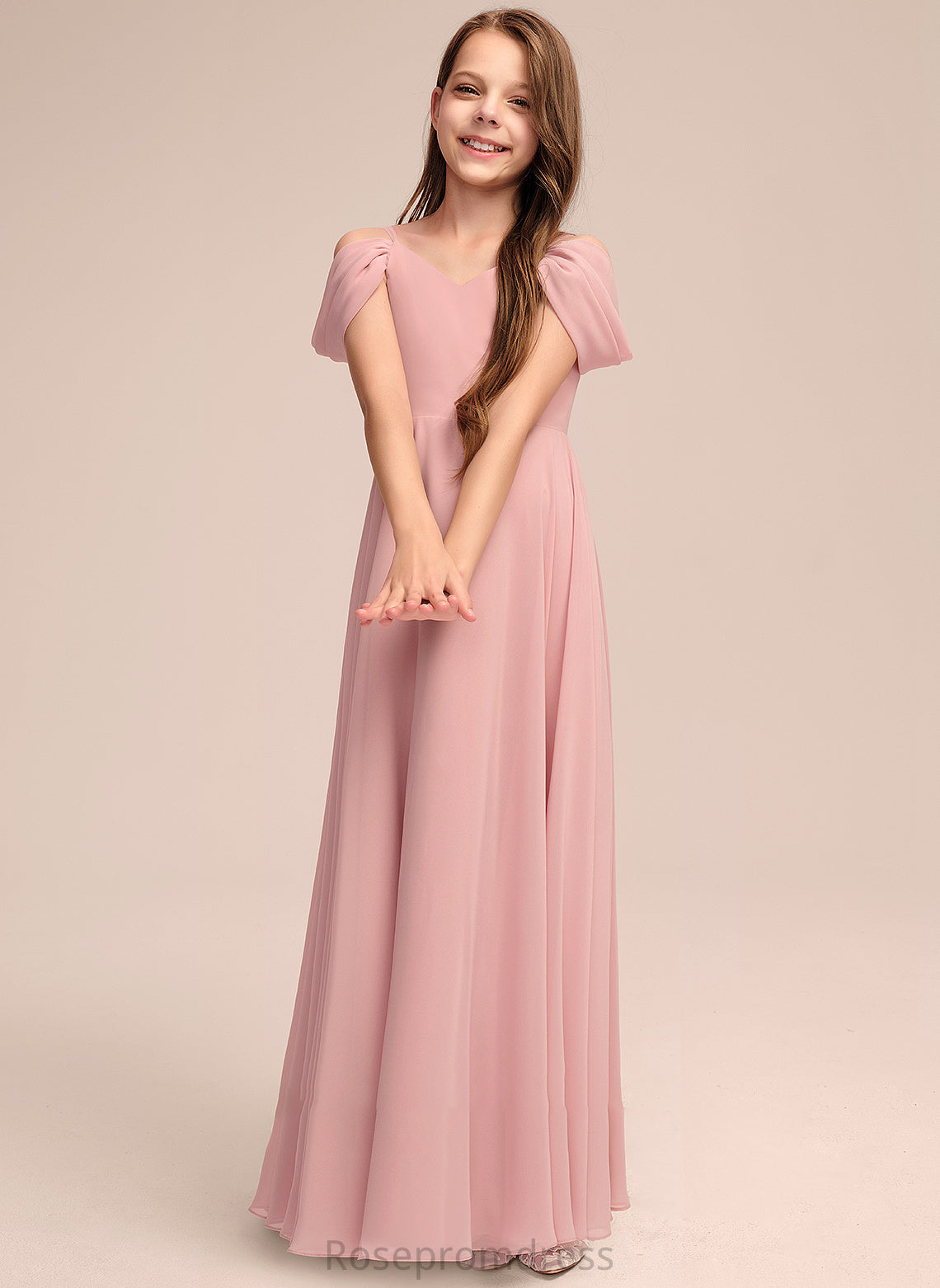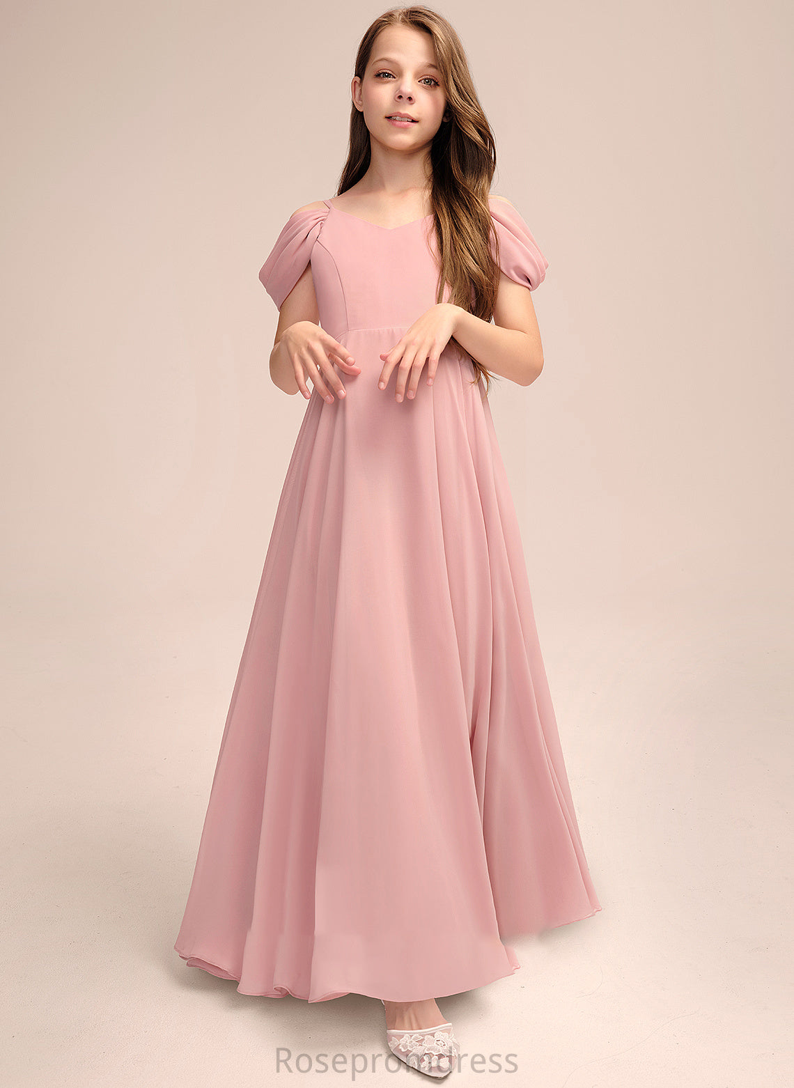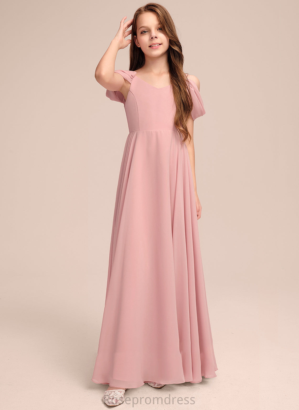 V-neck Floor-Length Angelique A-Line Chiffon Ruffle With Junior Bridesmaid Dresses