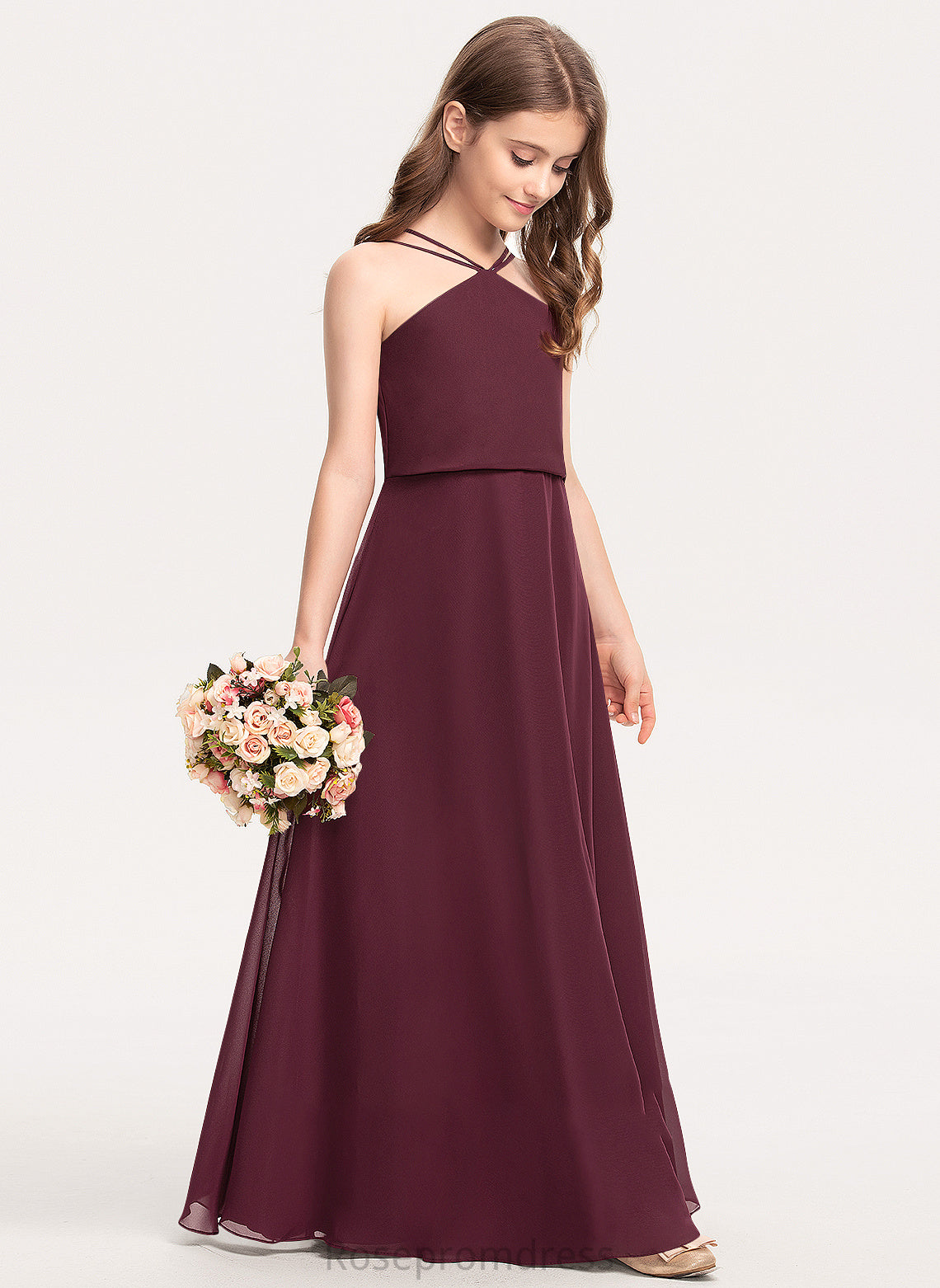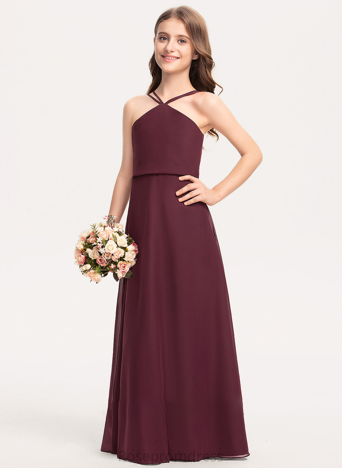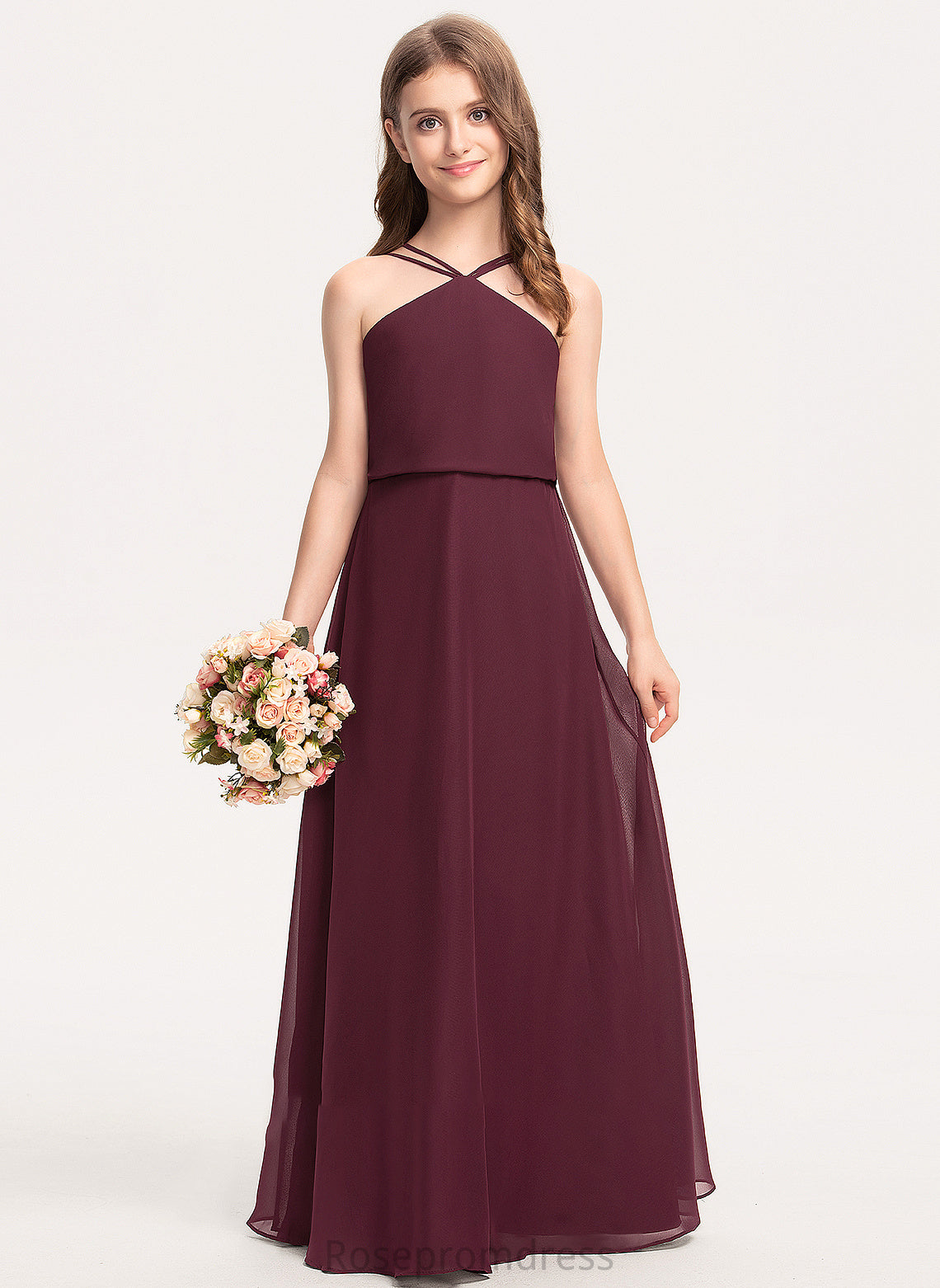 V-neck Floor-Length Elle Junior Bridesmaid Dresses Chiffon A-Line