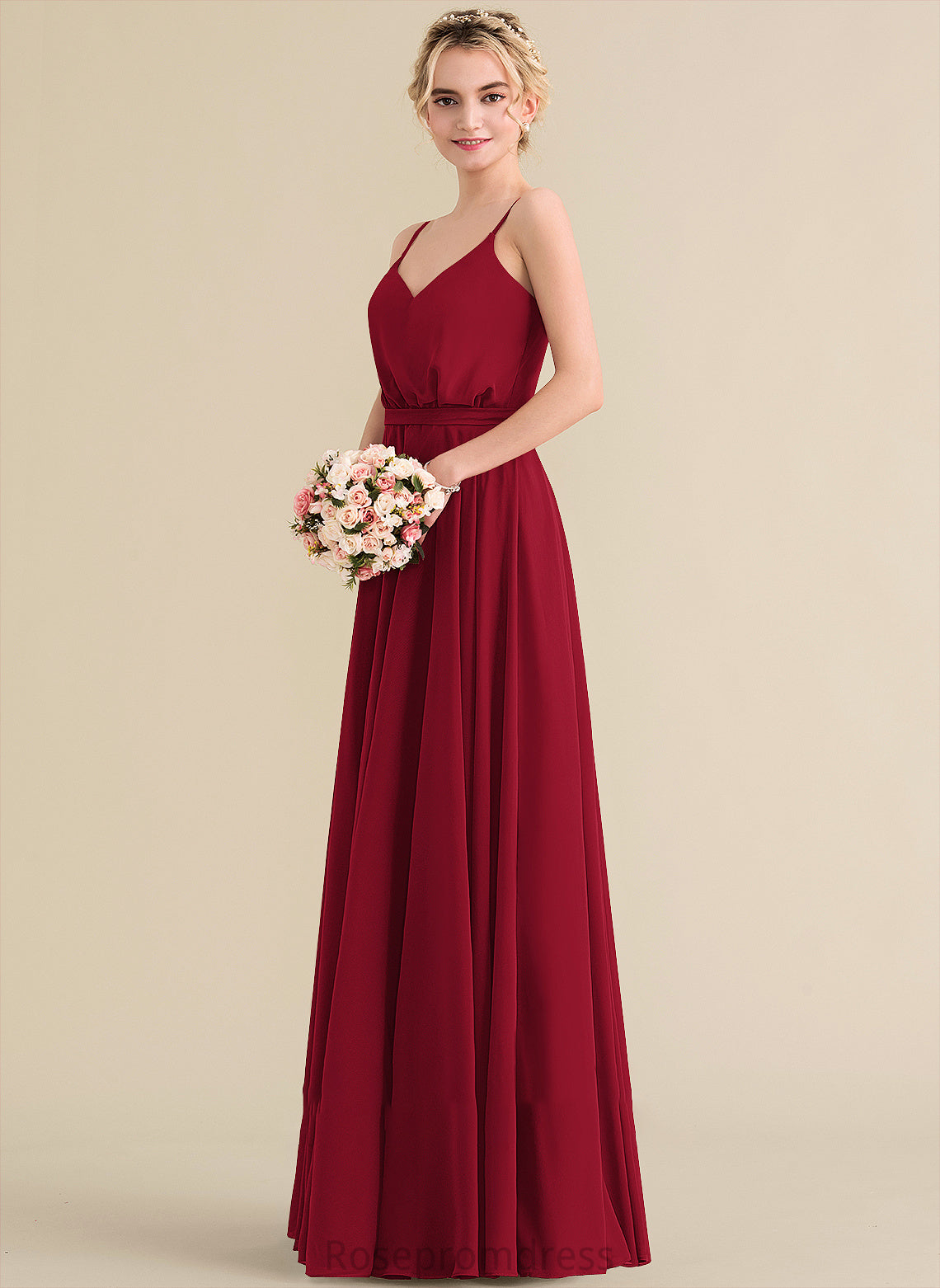 V-neck Length Floor-Length Embellishment Bow(s) Fabric A-Line Neckline Silhouette Jocelyn Natural Waist Sleeveless Bridesmaid Dresses