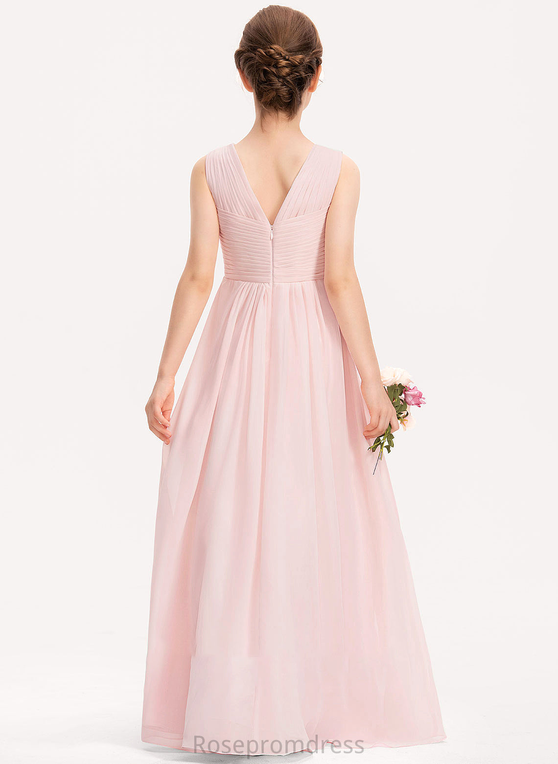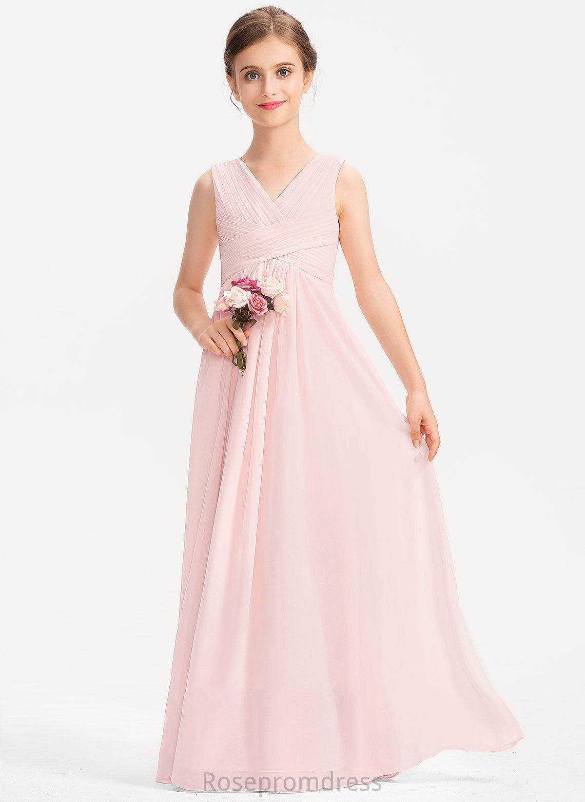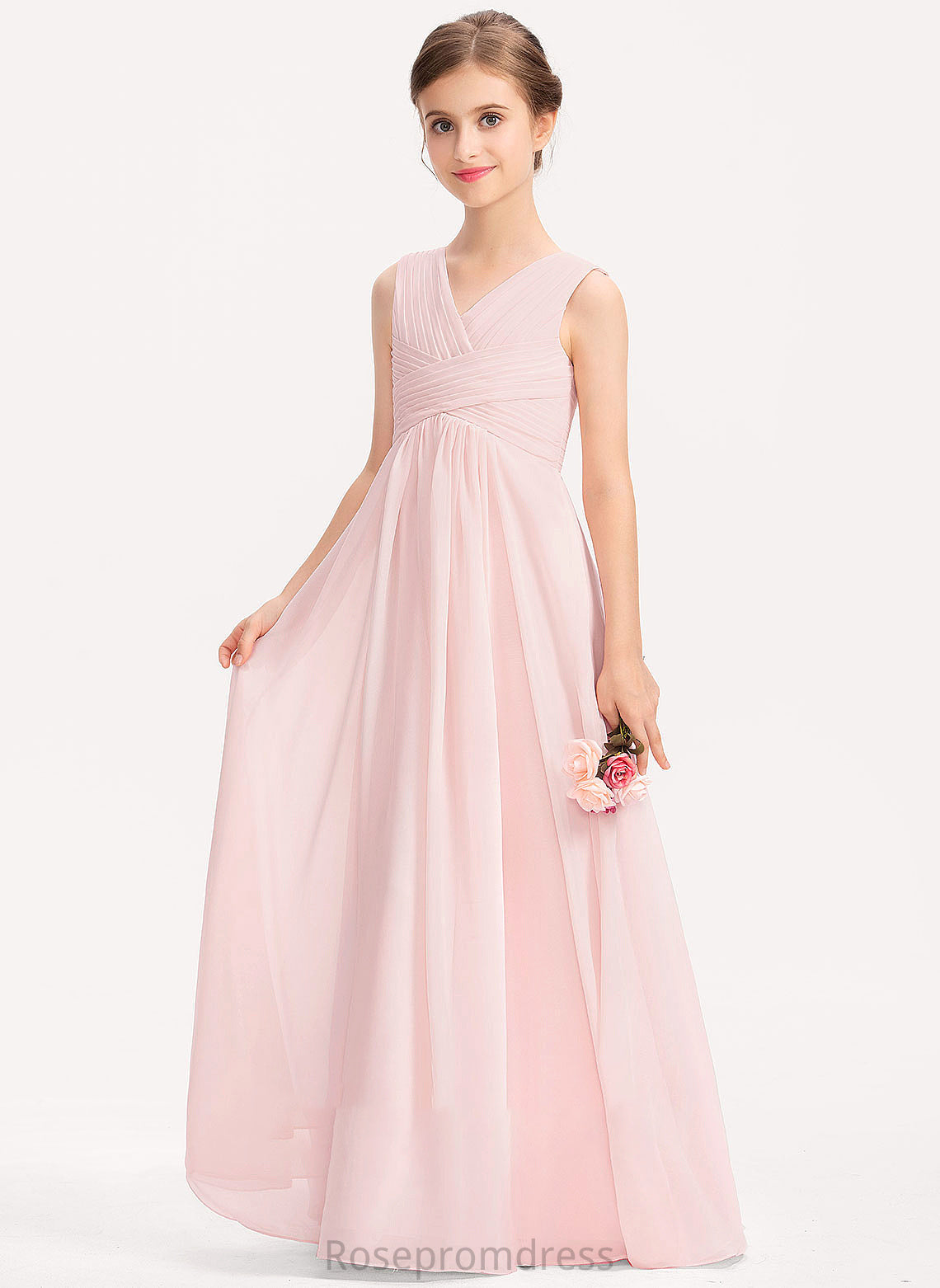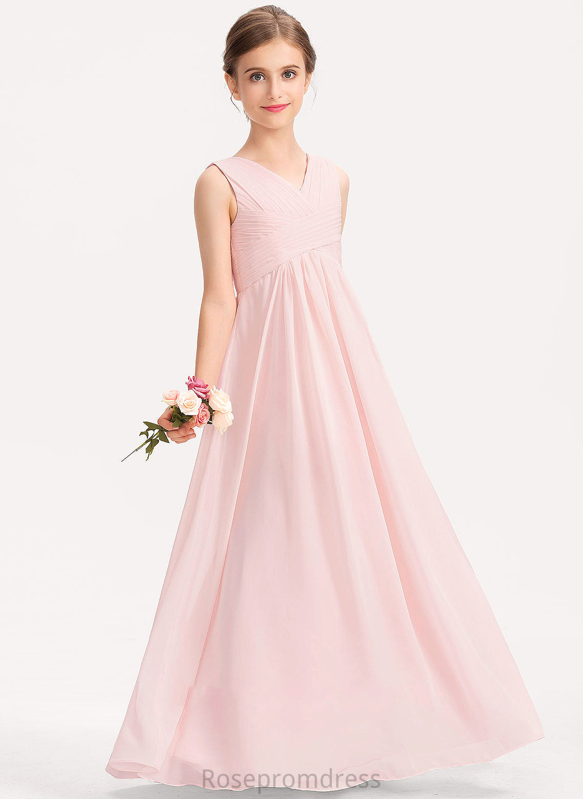 V-neck With Parker A-Line Floor-Length Chiffon Ruffle Junior Bridesmaid Dresses