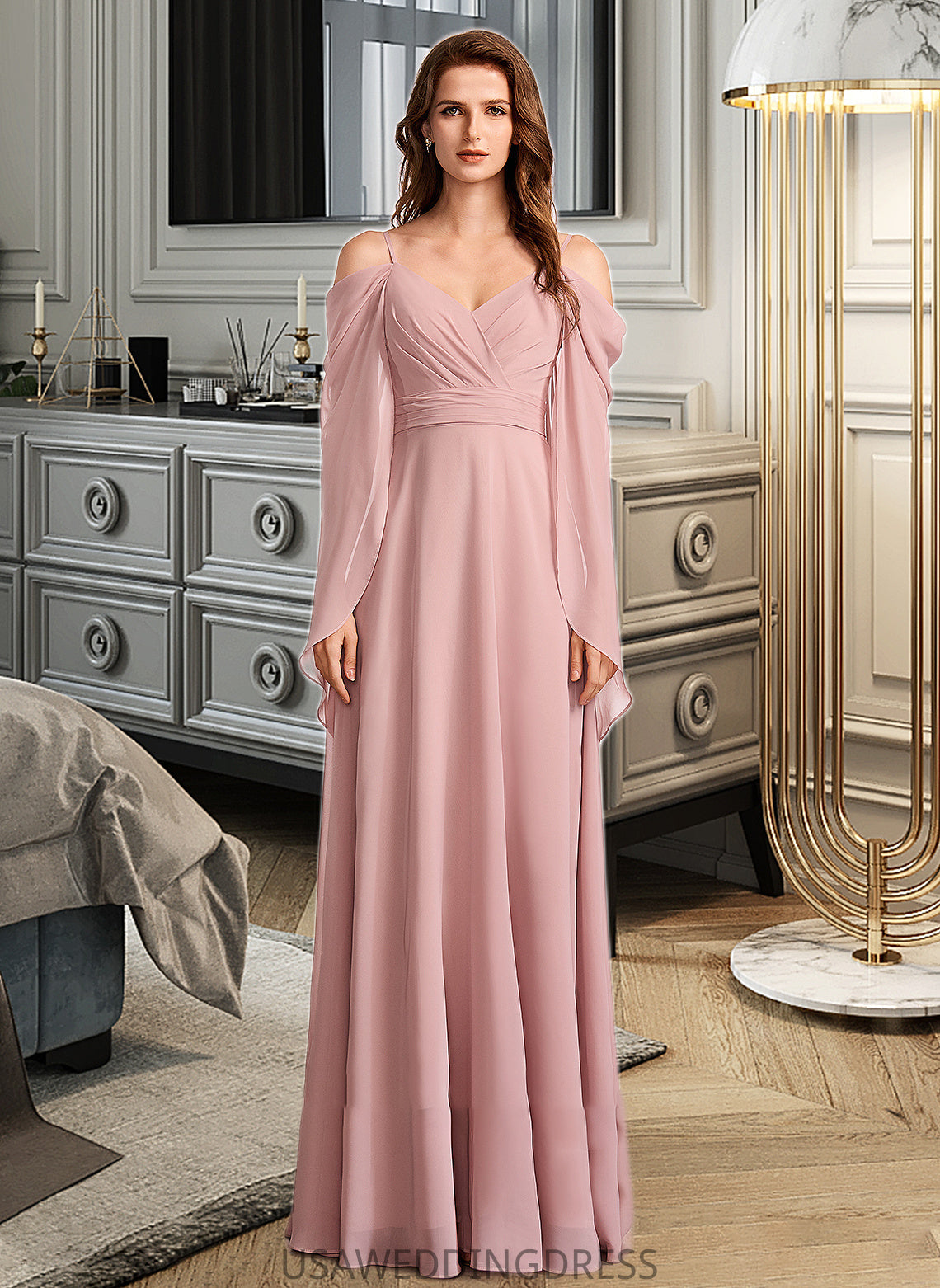 Vanessa A-Line V-neck Floor-Length Bridesmaid Dress DSP0012810