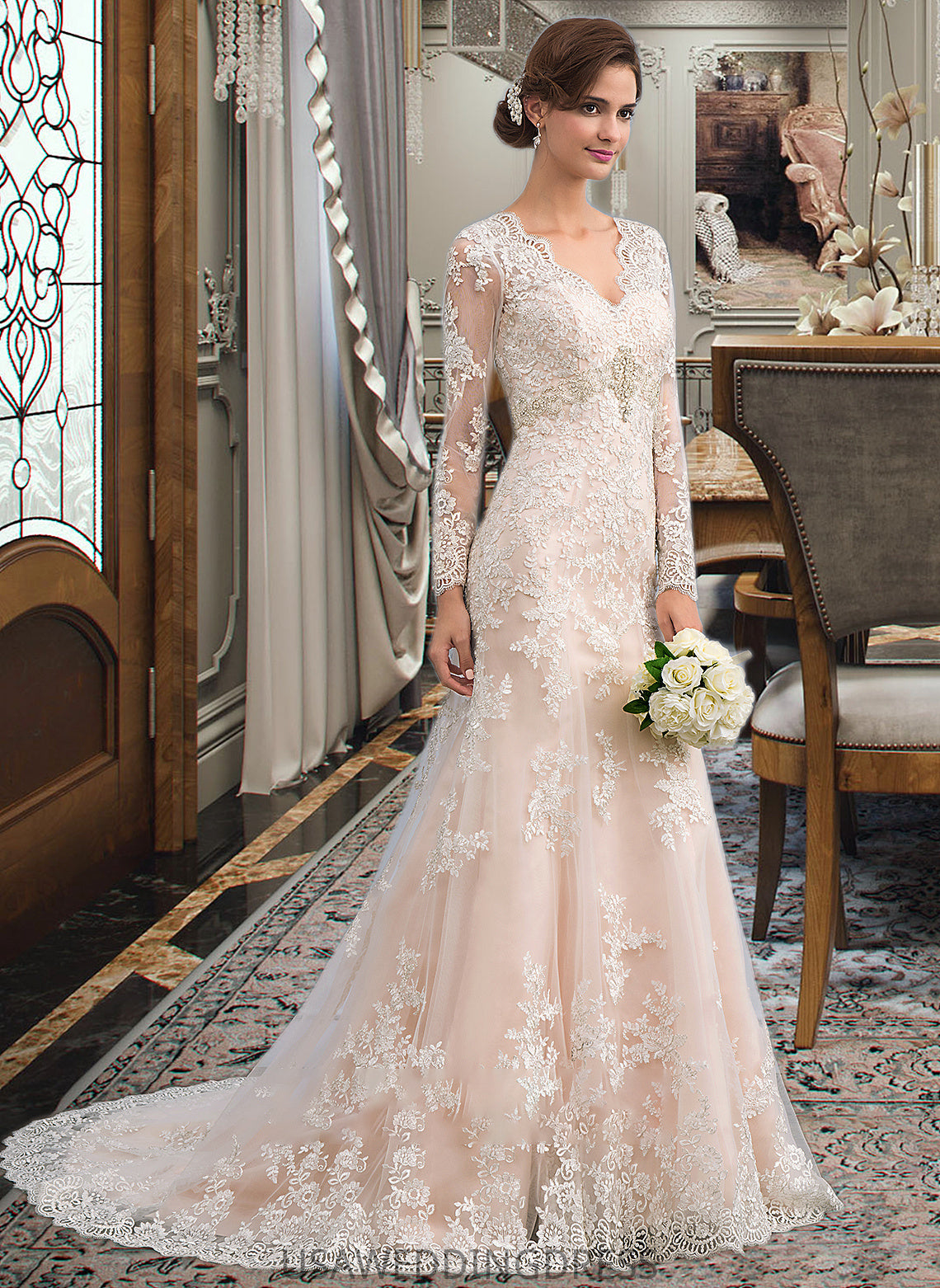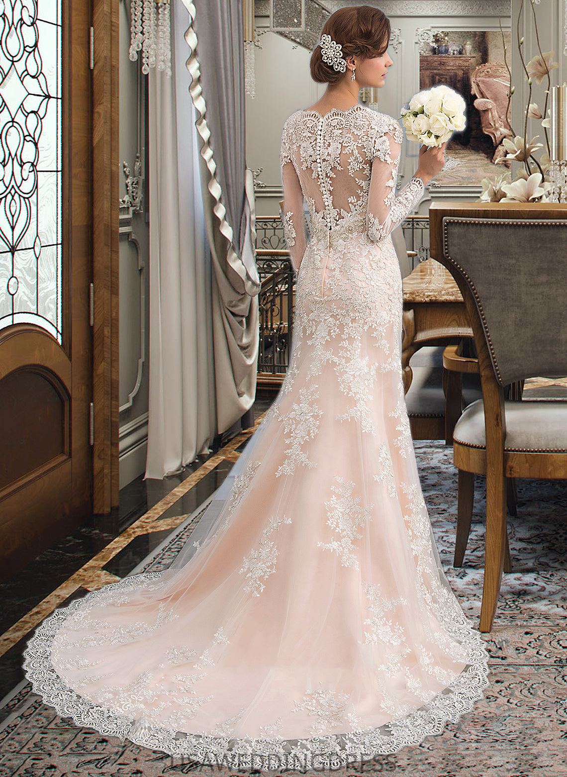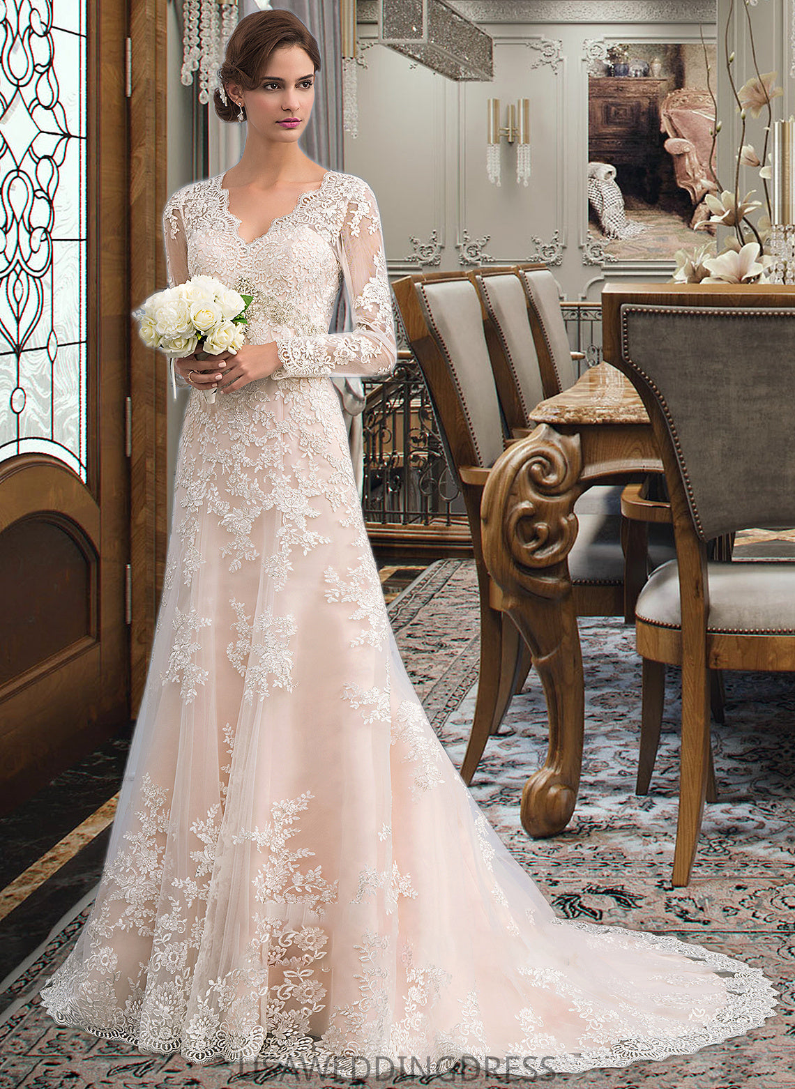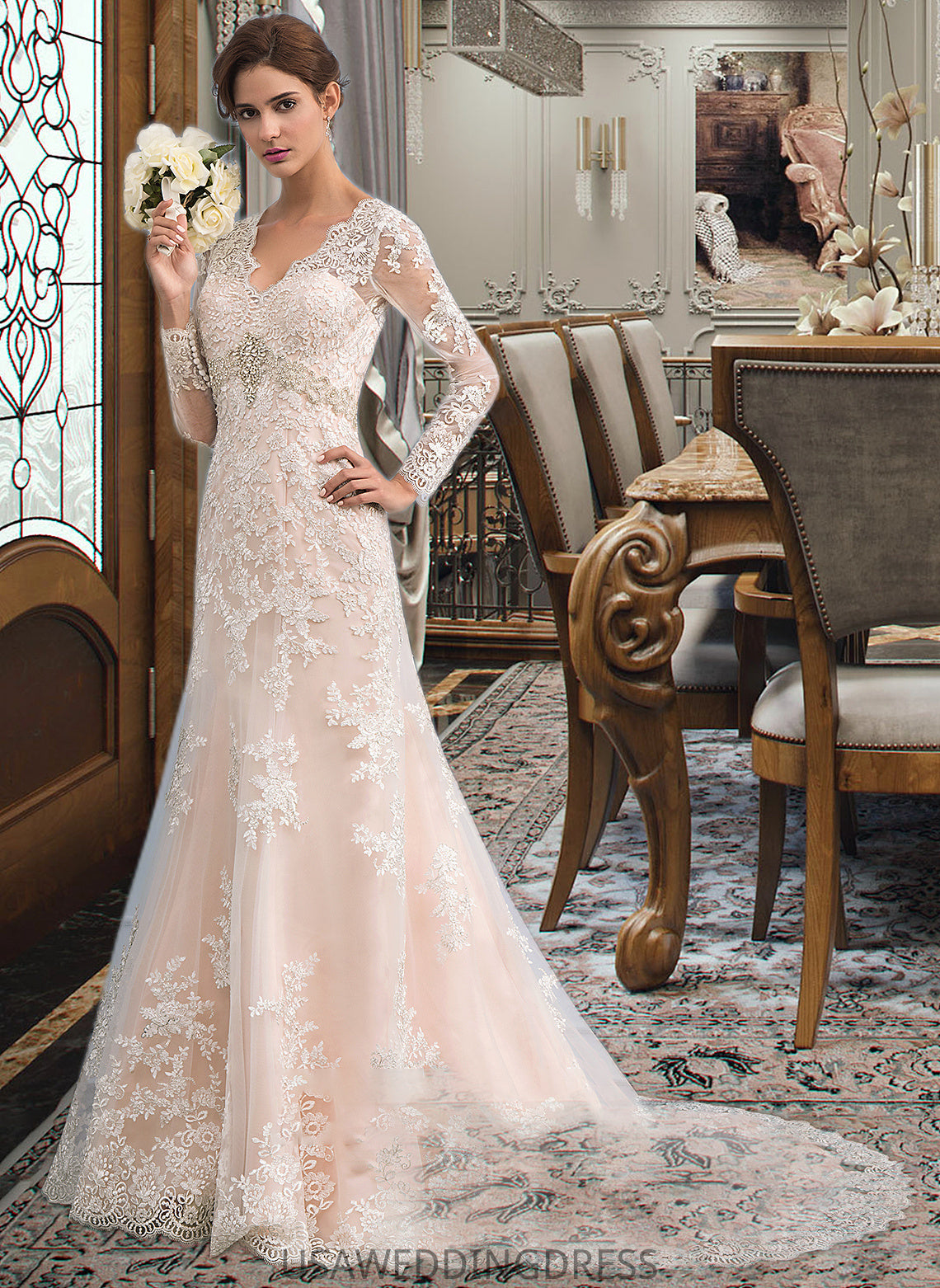 Vera Trumpet/Mermaid V-neck Court Train Tulle Lace Wedding Dress DSP0013694