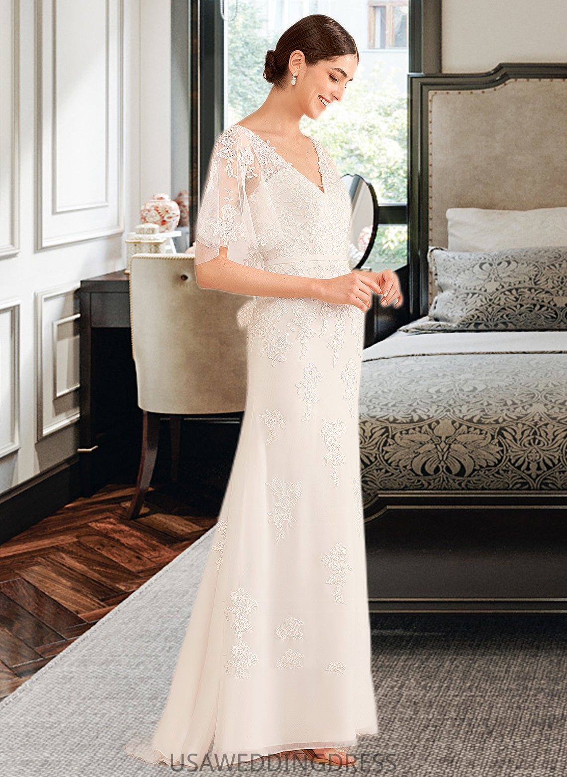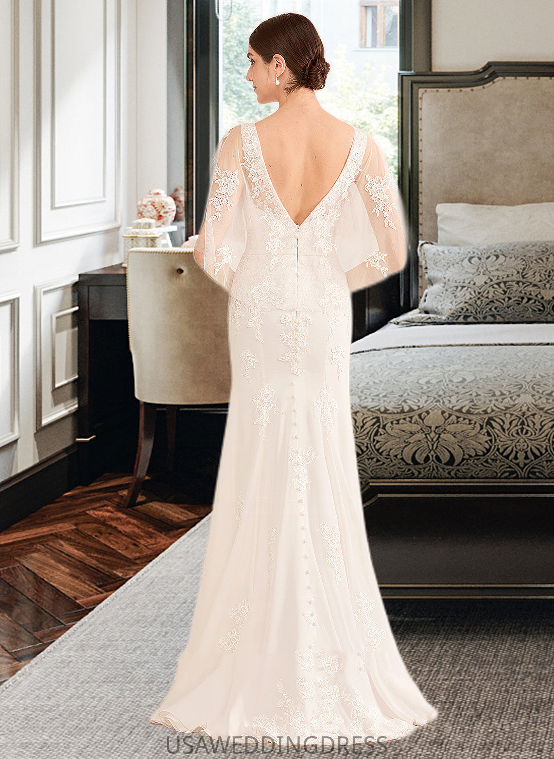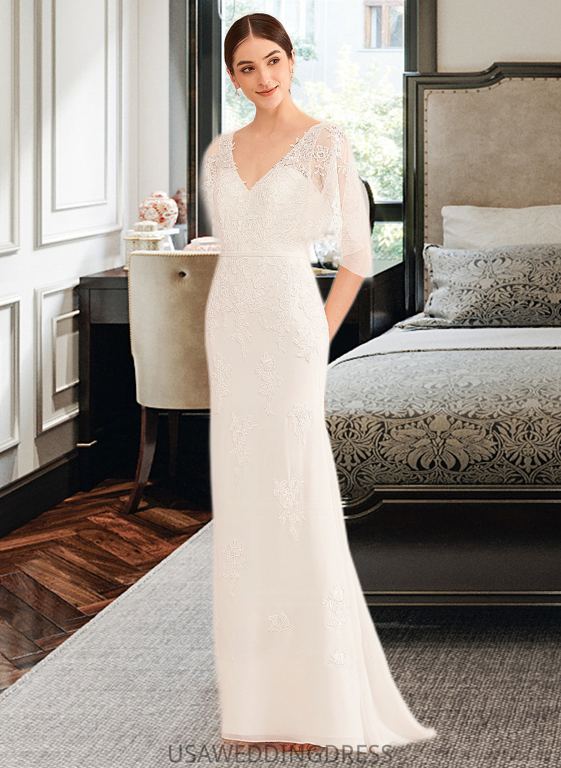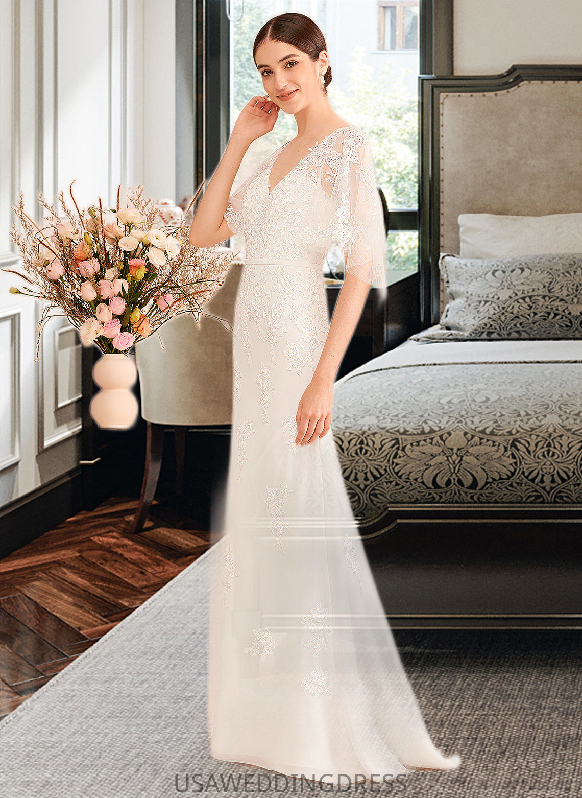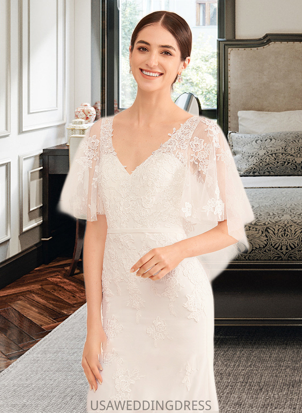 Vivian Trumpet/Mermaid V-neck Court Train Wedding Dress With Sash DSP0013744